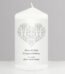 Personalised Any Message Silver Damask Heart Design Pillar Candle