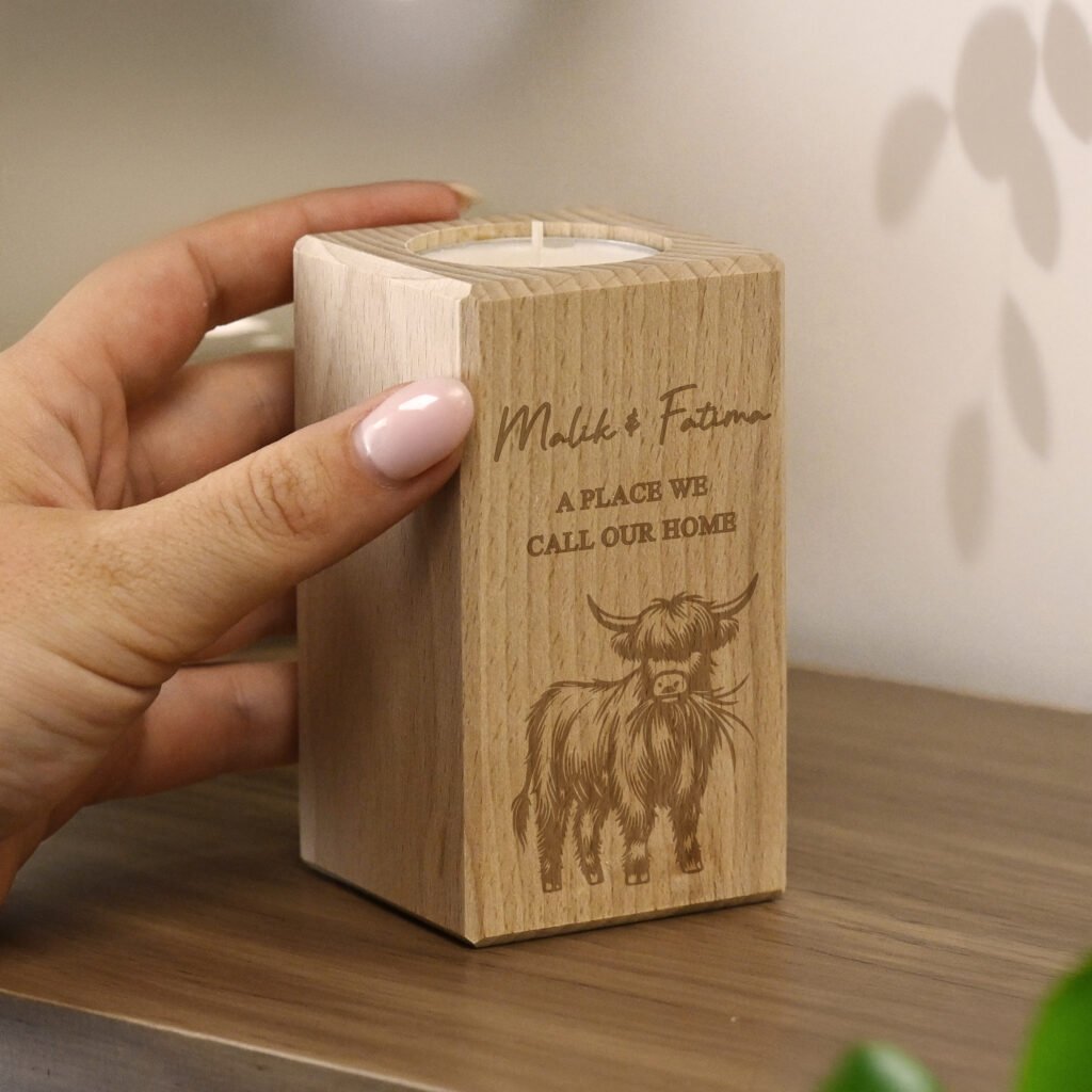 £12.99Personalised Engraved Highland Cow Design Scented Amber Glass Jar Candle