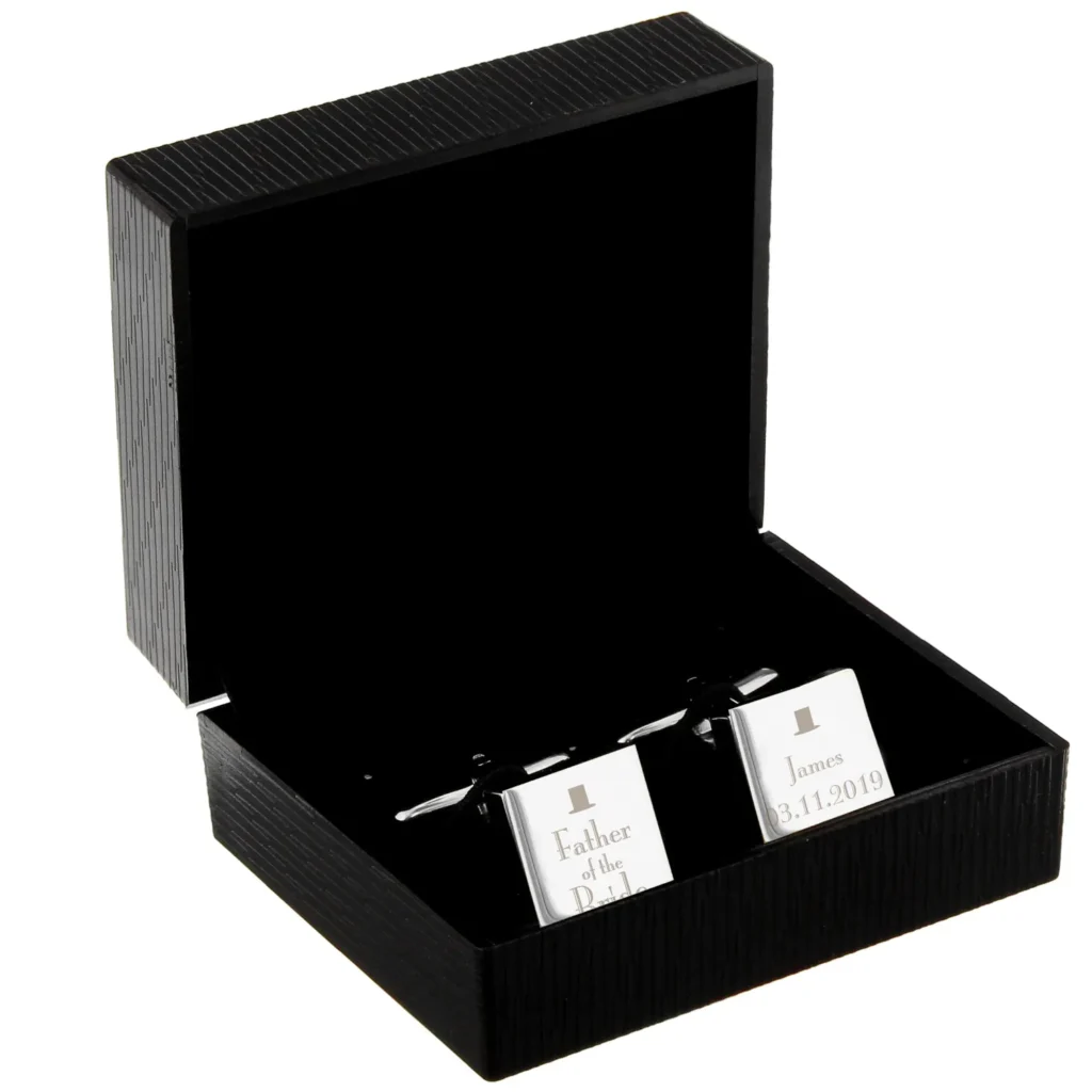 Personalised ‘Father of the Bride’ Decorative Top Hat Motif Wedding Silver Rhodium Plated Square Cufflinks