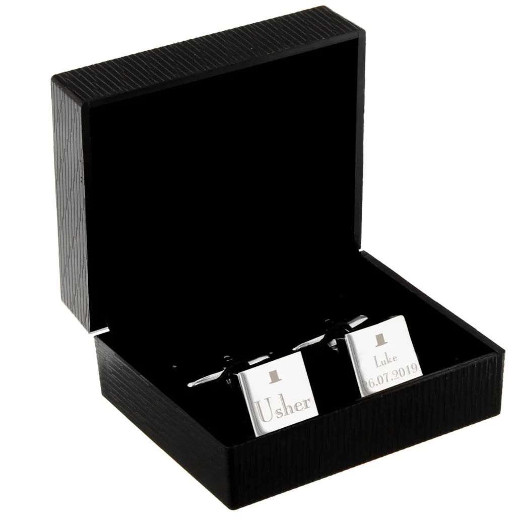 Personalised ‘Usher’ Decorative Top Hat Motif Wedding Silver Rhodium Plated Square Cufflinks