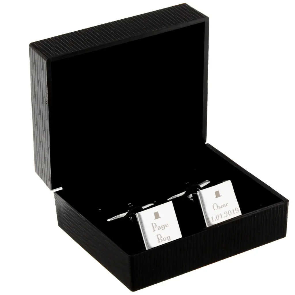 Personalised ‘Page Boy’ Decorative Top Hat Motif Wedding Silver Rhodium Plated Square Cufflinks