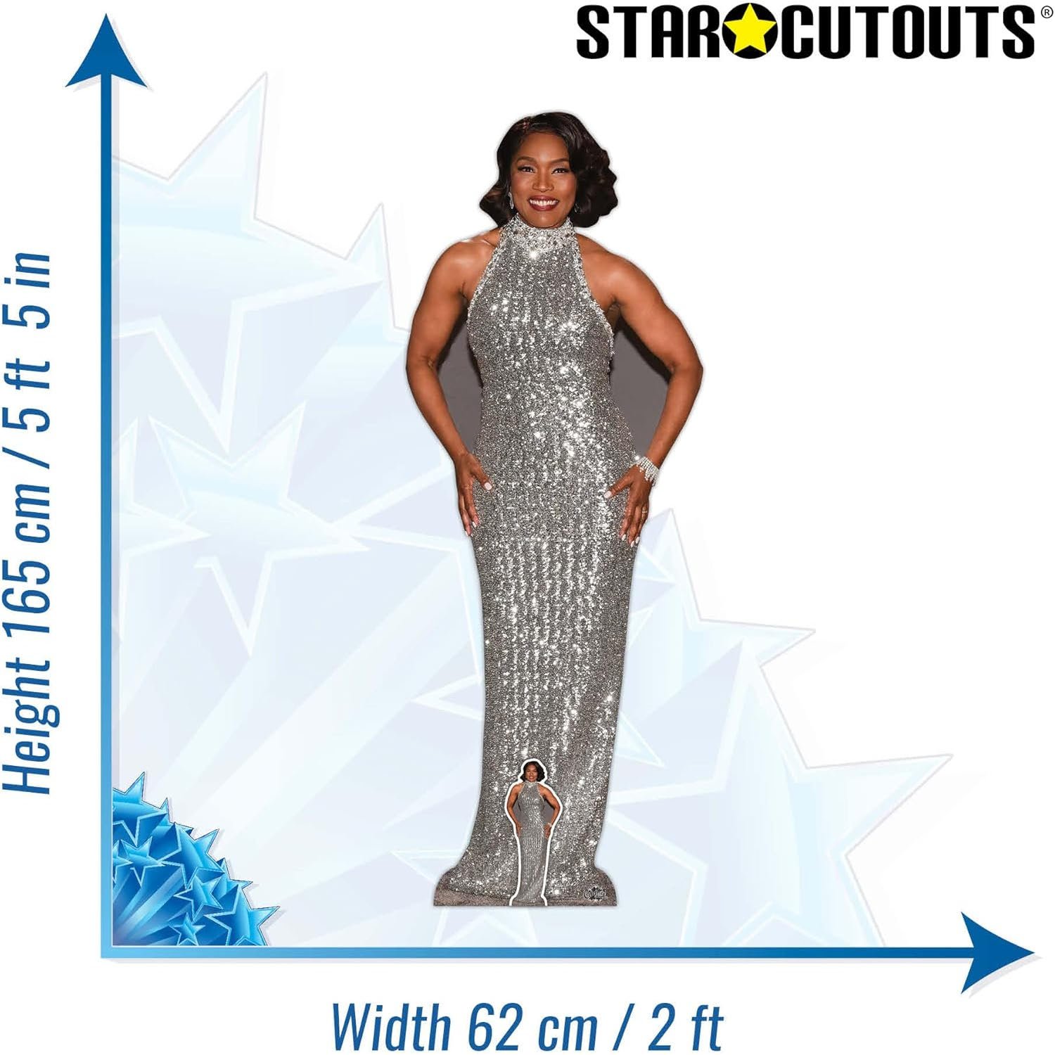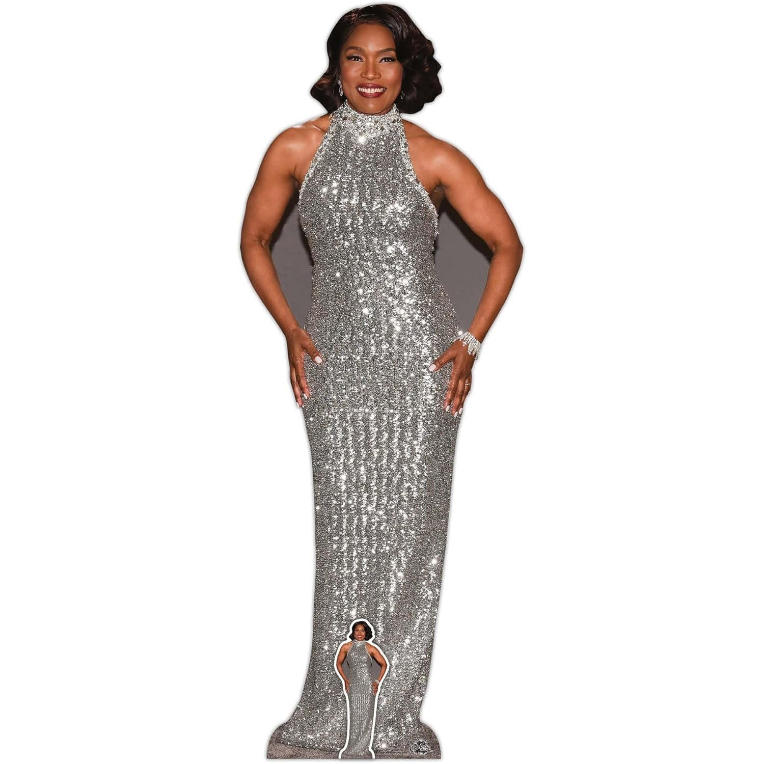 Bring the elegance, power, and Hollywood presence of Angela Bassett into your space with this stunning cardboard cutout set. Featuring the acclaimed American actress in a glamorous silver dress, this set includes both a lifesize standee and a mini tabletop cutout, perfect for fans, themed events, photo ops, and collector displays.