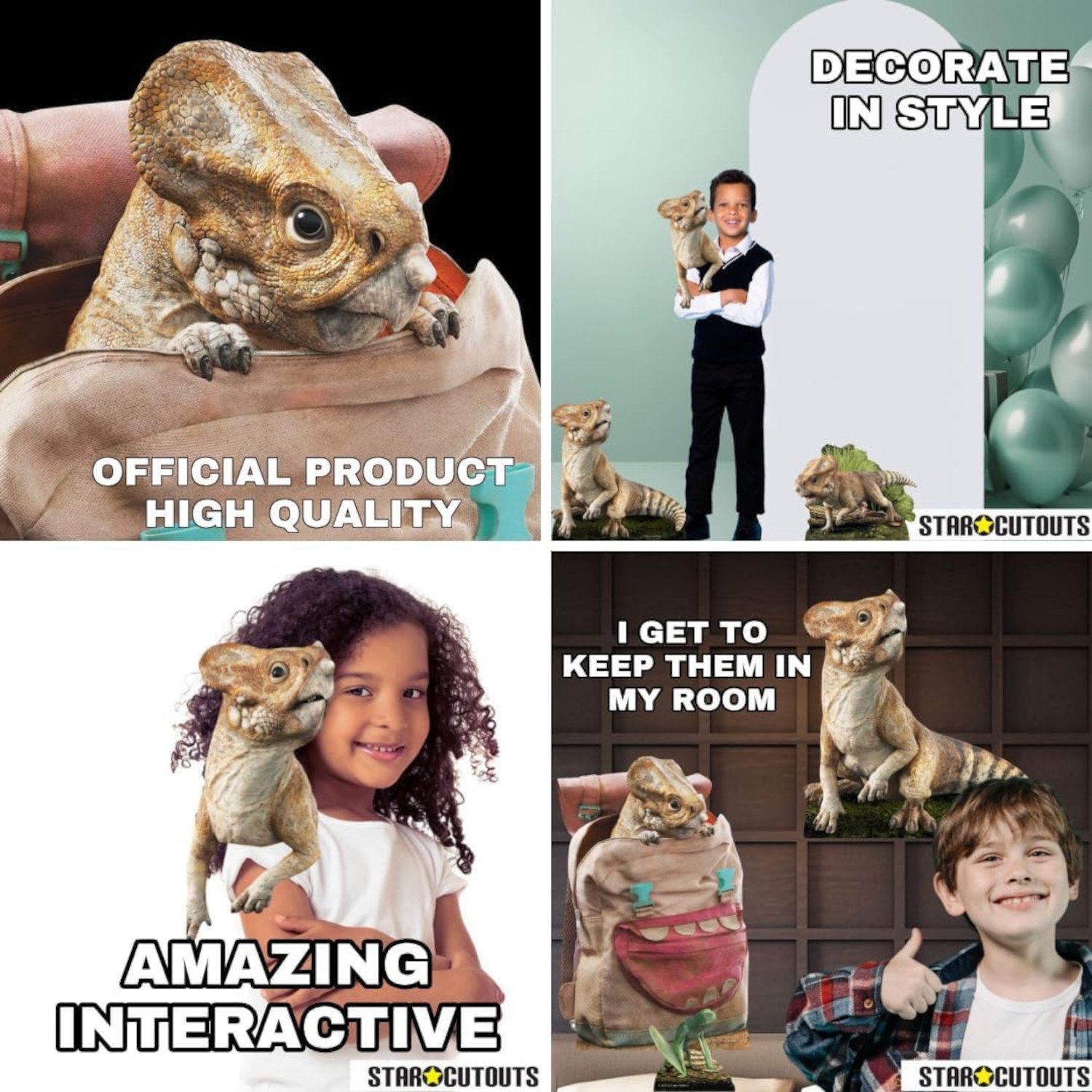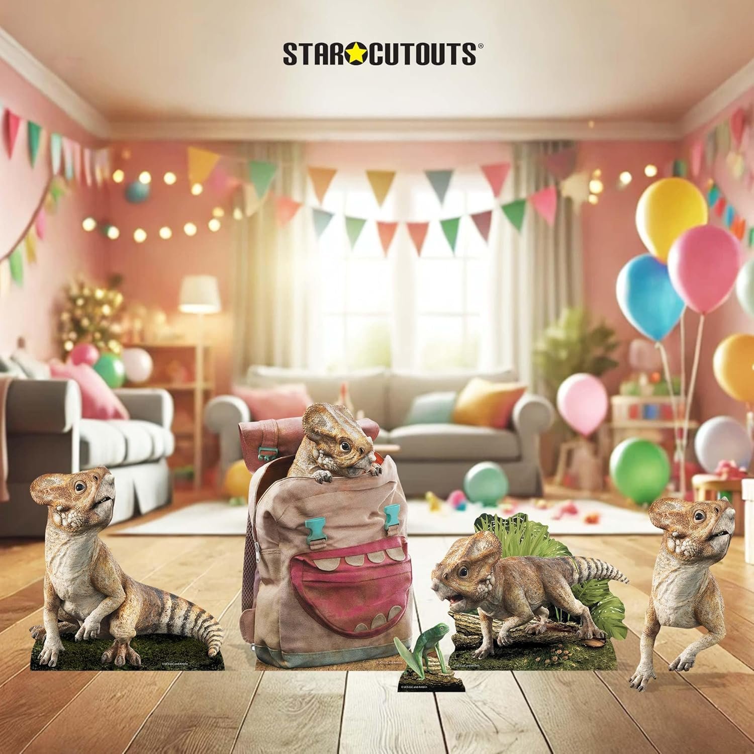 Cute, curious, and full of personality, this Aquilops Multi Pack Bundle Cardboard Cutouts / Standees is perfect for recreating the most adorable moments from Jurassic World: Rebirth. From peeking out of a rucksack to perching on your shoulder, Aquilops is ready to become your very own prehistoric sidekick!