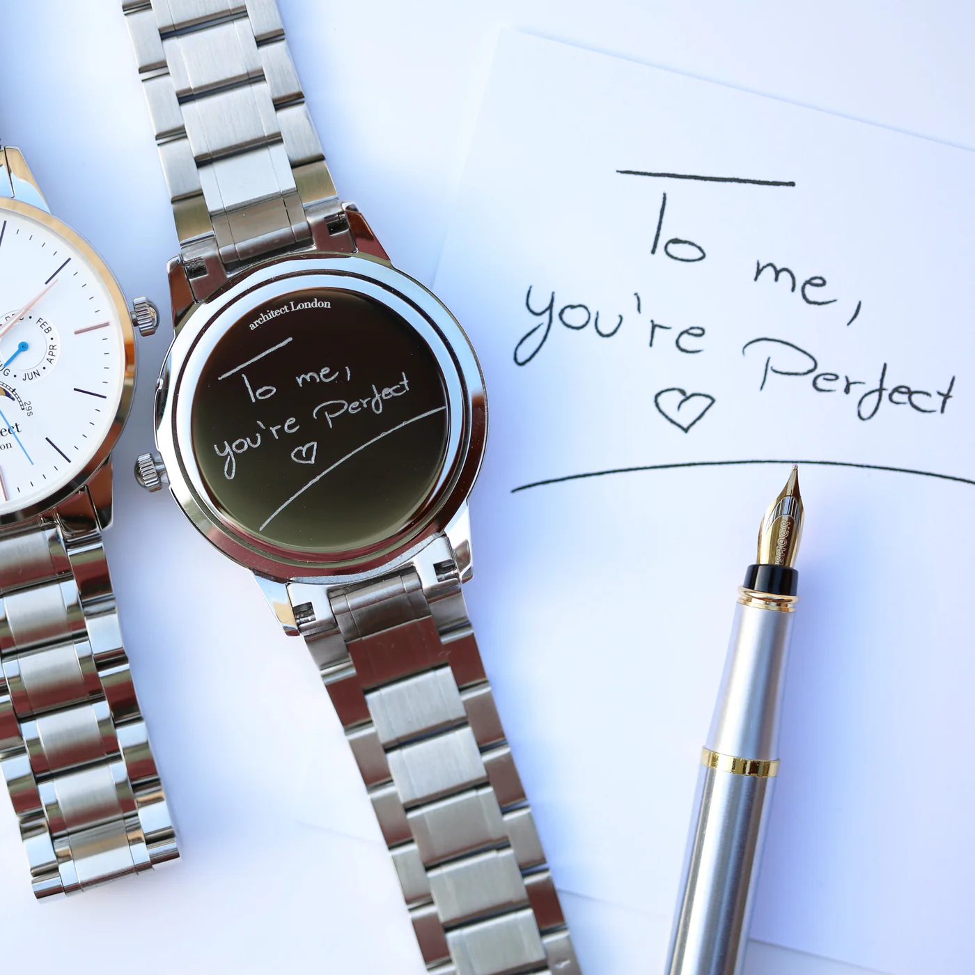 What truly makes this watch exceptional is the ability to personalise it using your own handwriting. With a dedicated 32mm x 30mm engravable area, your signature, message, or handwritten note is captured and engraved with precision using Architect London’s proprietary technology—transforming this stunning watch into a deeply meaningful keepsake.