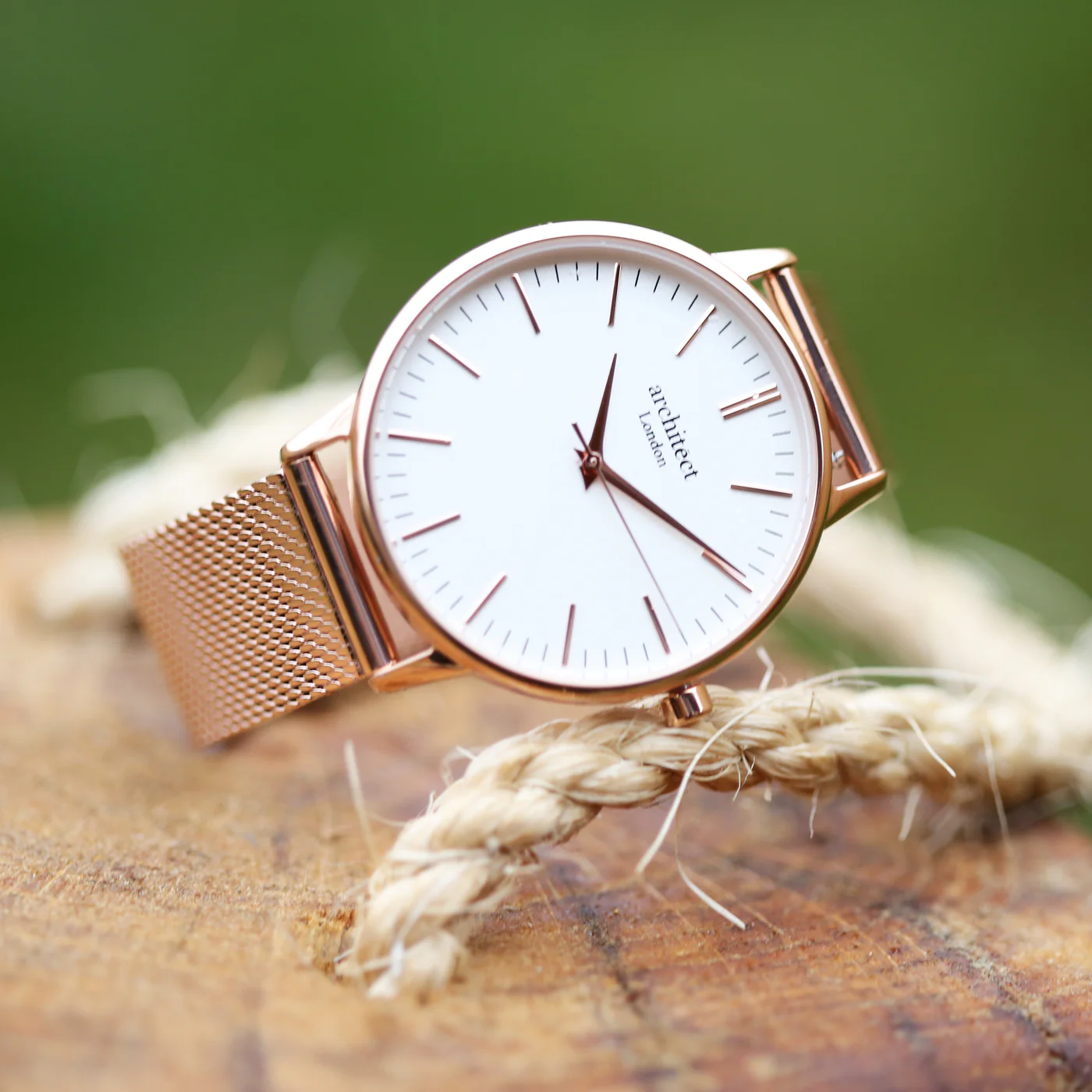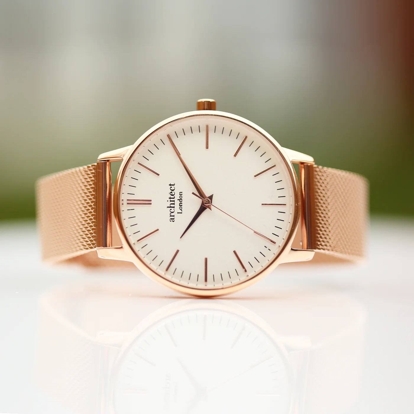 Architect London Ladies Own Handwriting White Face Watch With Rose Gold Mesh Strap
