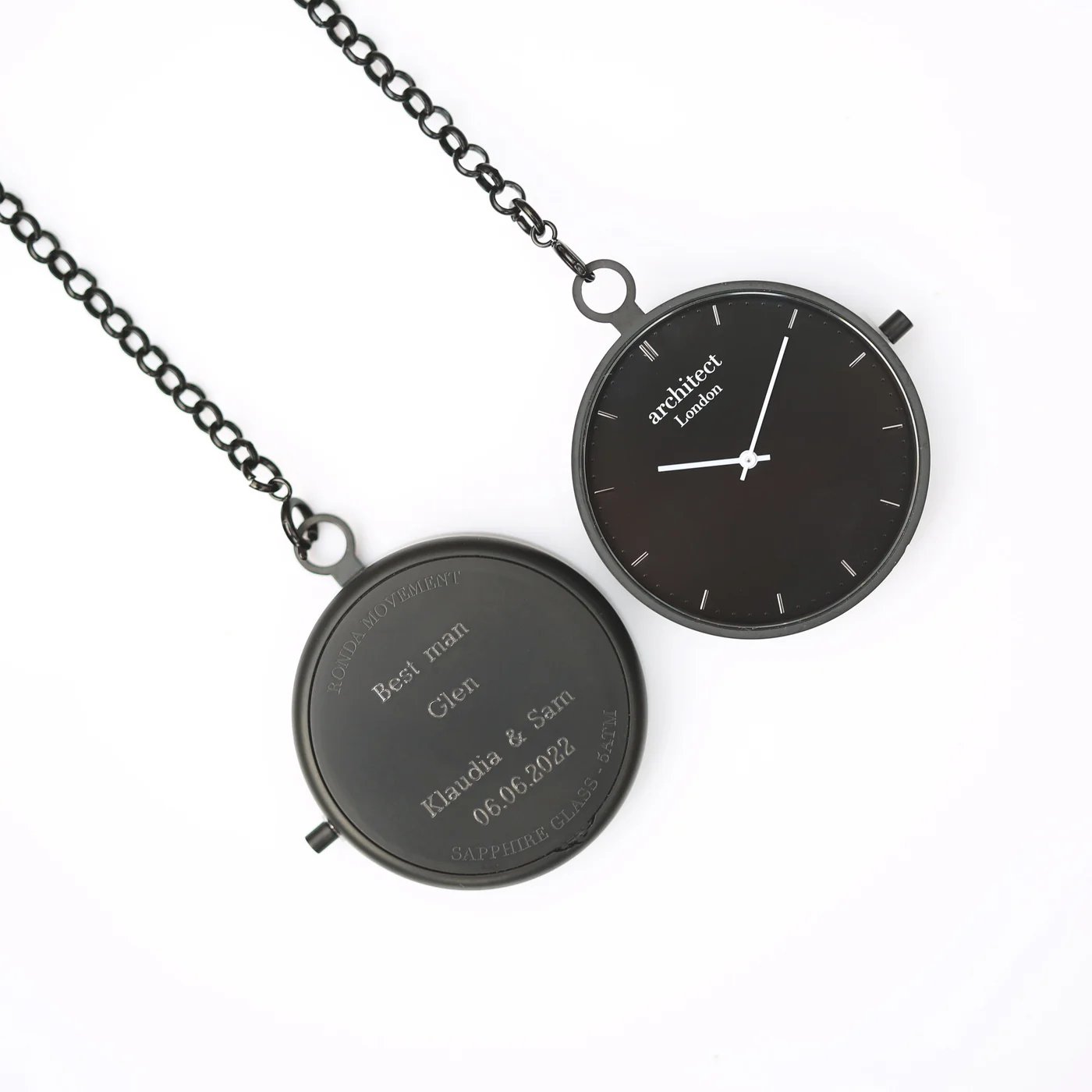 Architect London Modern Font Engraving Black Modern Pocket Watch