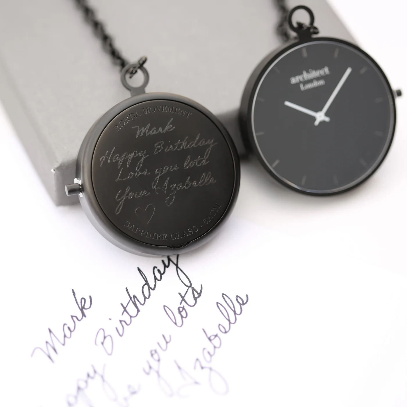 A bold modern design. Premium engineering. Personalised with your own handwriting. This is a pocket watch created not just to be worn—but to be treasured forever.