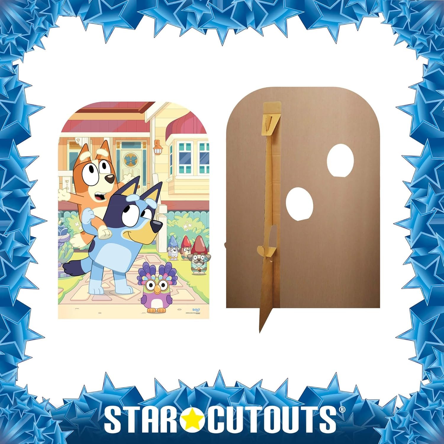 Bring the fun of Bluey’s world right into your home with this delightful child-sized standee featuring Bluey and her sister Bingo in a charming “At Home” scene. Perfect for kids, fans of the show, and interactive play, this cardboard cutout lets little ones step into the adventures of everyone’s favourite Blue Heeler family.
