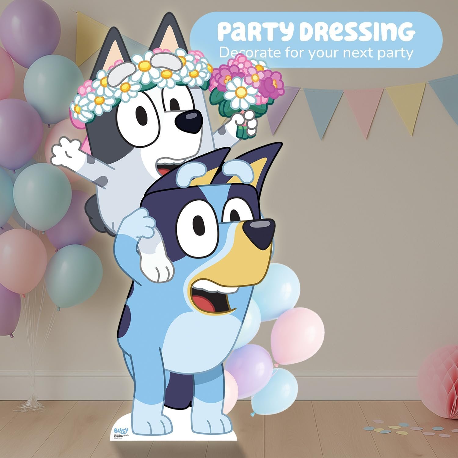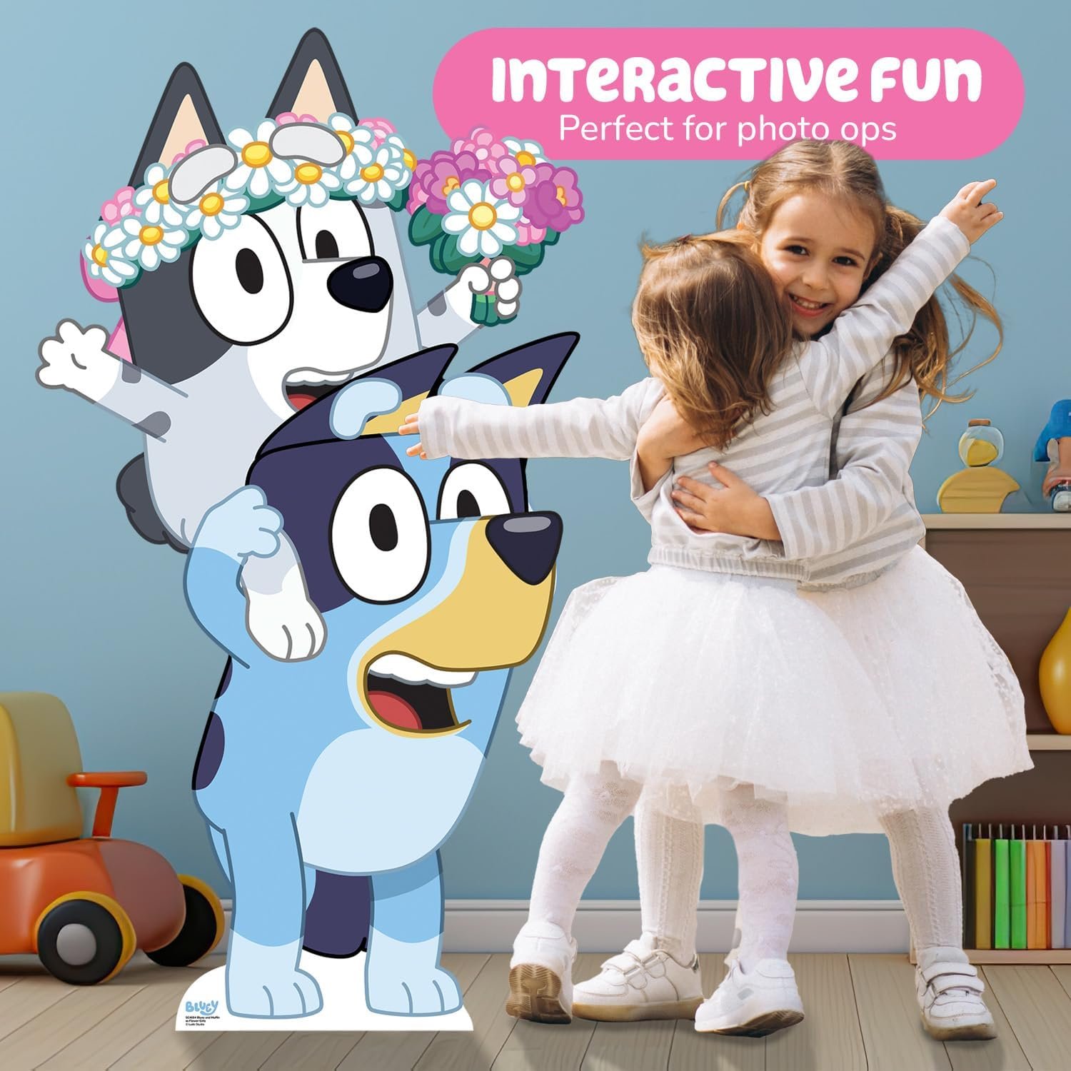 Bring the charm of Bluey and Muffin into your home with this adorable cardboard cutout featuring the beloved characters as flower girls! Perfect for fans of the hit animated series Bluey, this officially licensed standee captures a sweet, playful wedding-themed moment that’s bursting with colour and character.