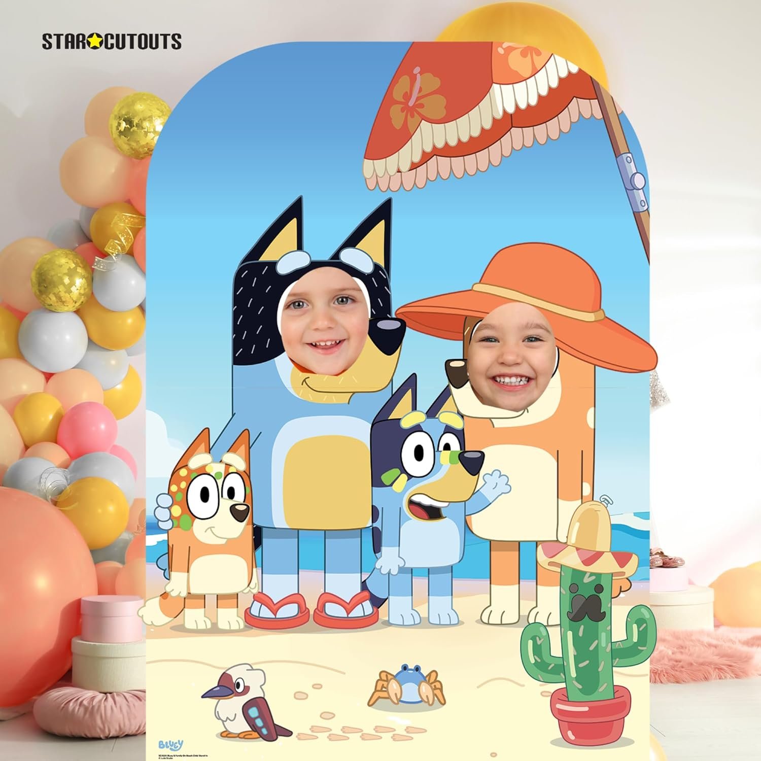 Bring the sunny adventures of the Heeler family to life with the Bluey On-Beach Stand-In Cutout! Perfect for playrooms, parties, or special events, this interactive cardboard standee lets kids and adults step into the world of Bluey and her family for endless fun and memorable photo opportunities.
