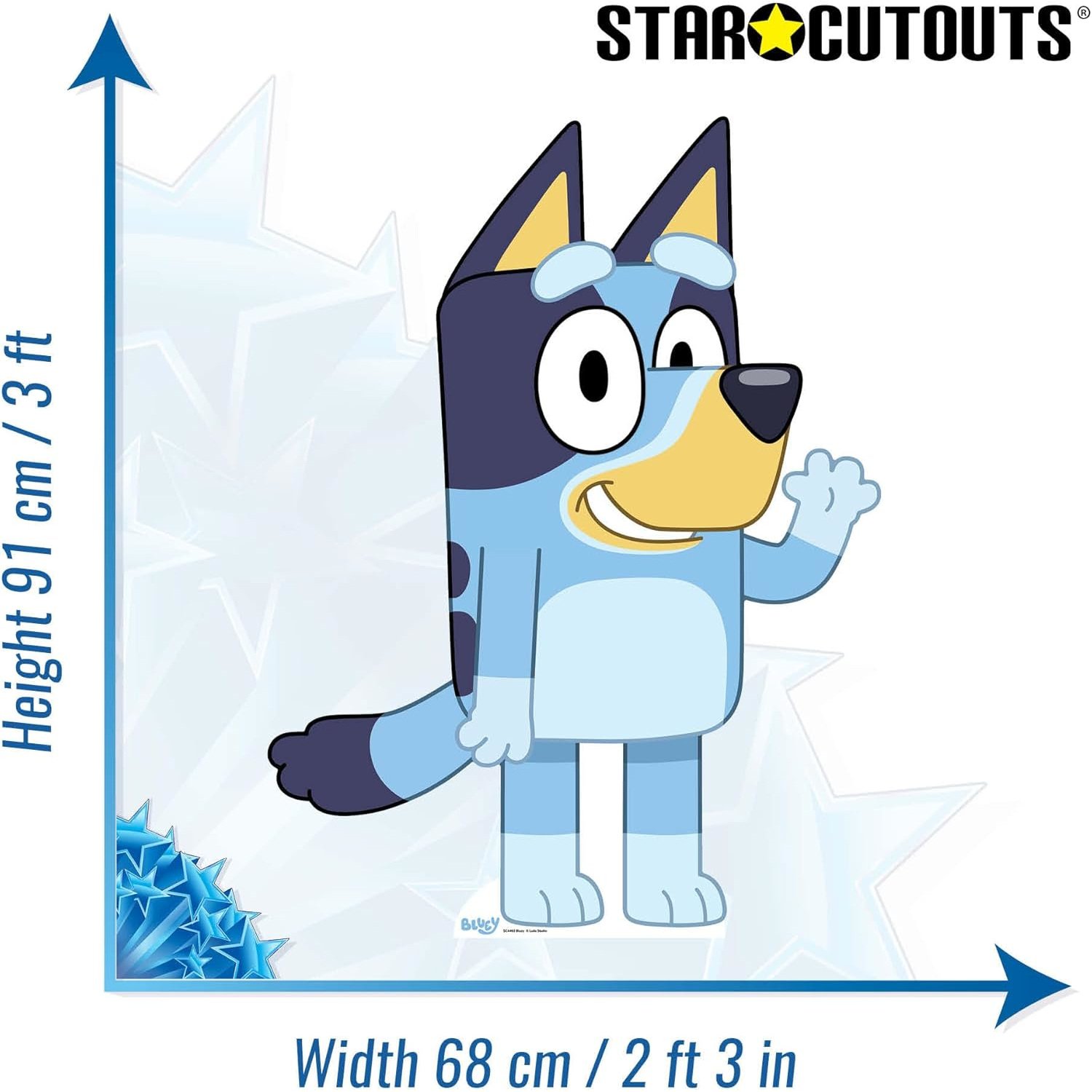 - Official Bluey Merchandise: Fully licensed lifesize and mini cardboard cutout featuring Bluey, the beloved Blue Heeler puppy.