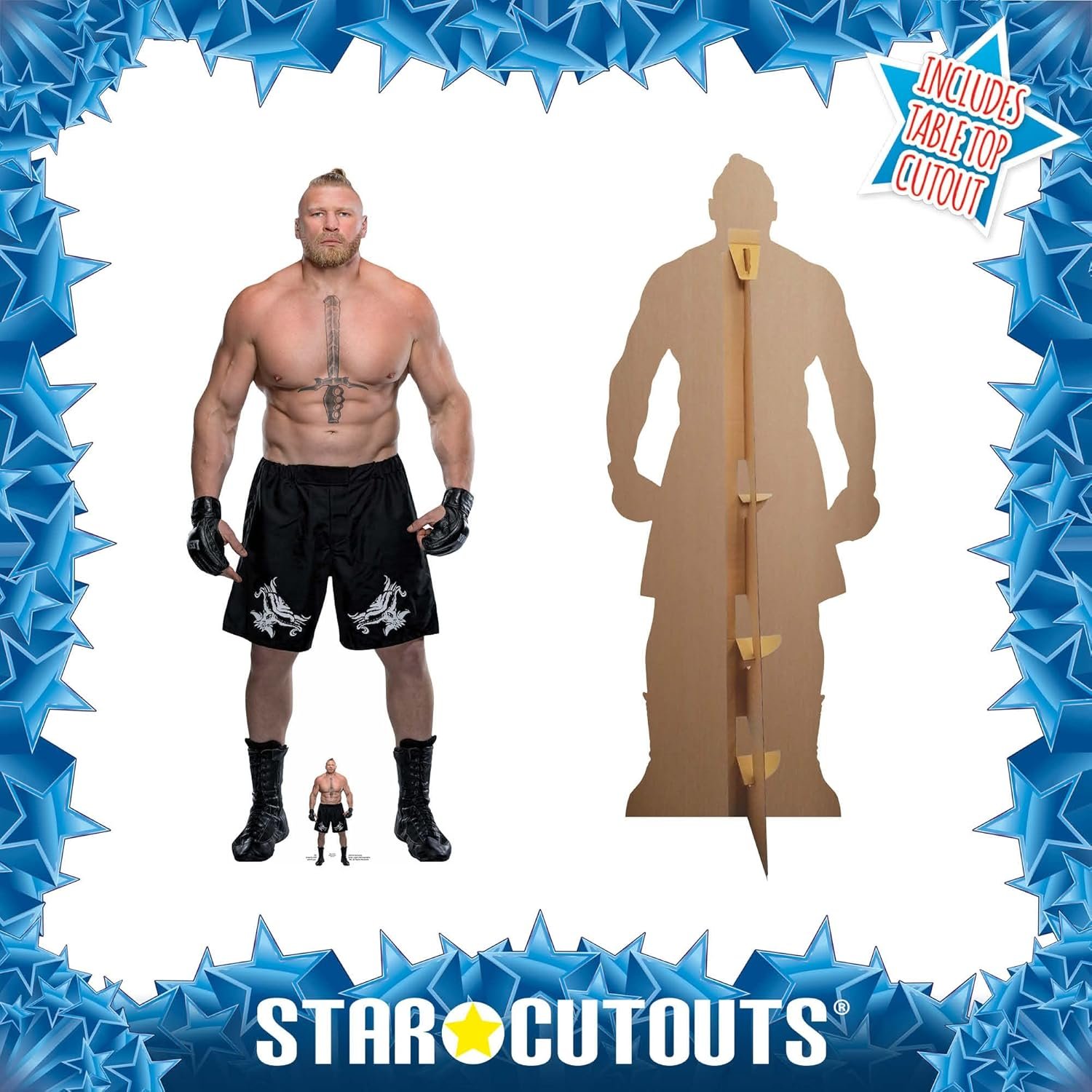 Whether you’re decorating a fan cave, hosting a WWE-themed party, or expanding your collectable collection, this Brock Lesnar lifesize and mini cardboard cutout set delivers “The Beast Incarnate” straight to your home!