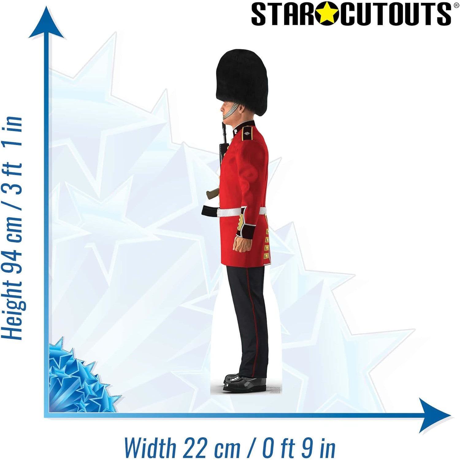 - Mini tabletop cardboard cutout (90 x 21cm) of a Buckingham Palace (King’s) Guard