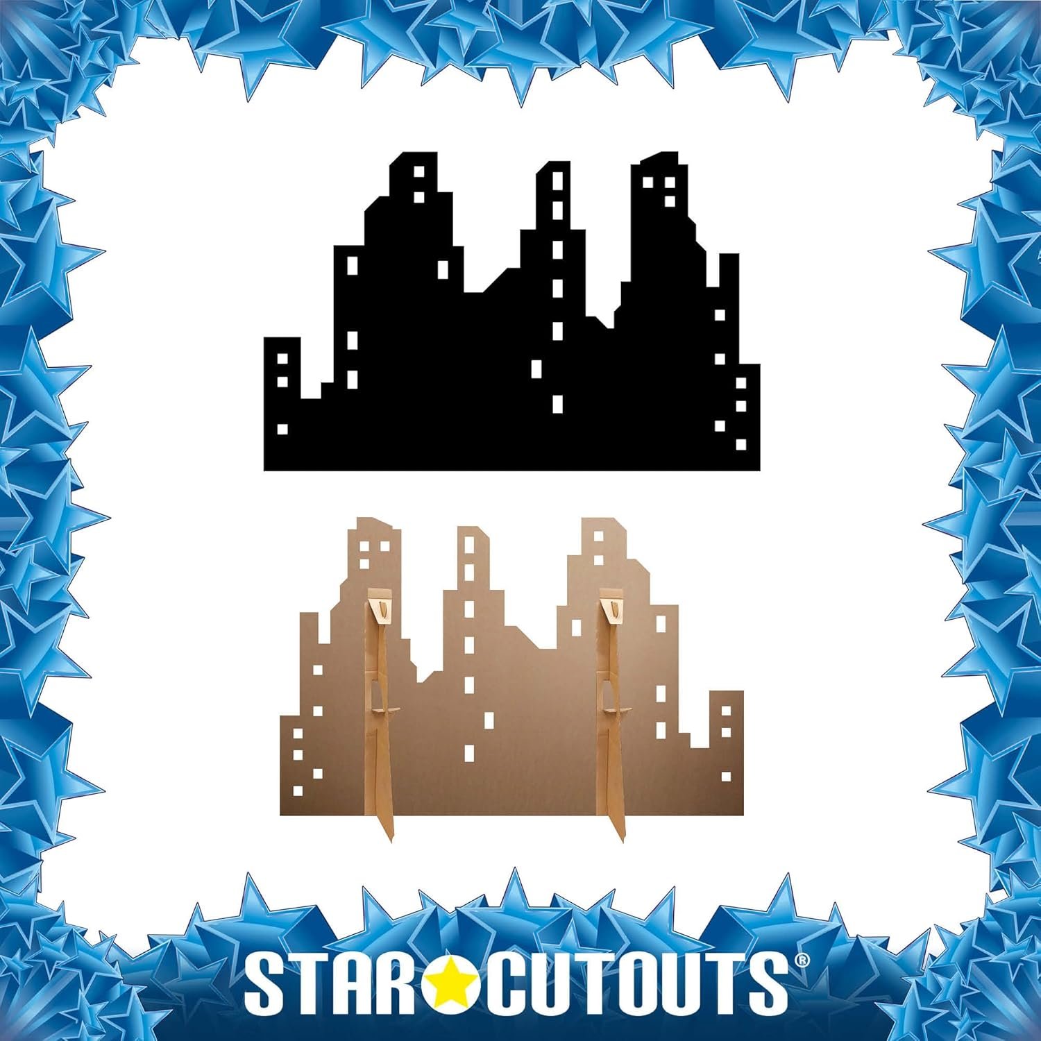 Create a striking urban atmosphere with this City Skyline (Silhouette) Large Cardboard Cutout. Featuring a bold and stylish outline of a modern city skyline, this standee is perfect for transforming any space into a dramatic cityscape, ideal for events, parties, stage sets, or contemporary home décor.
