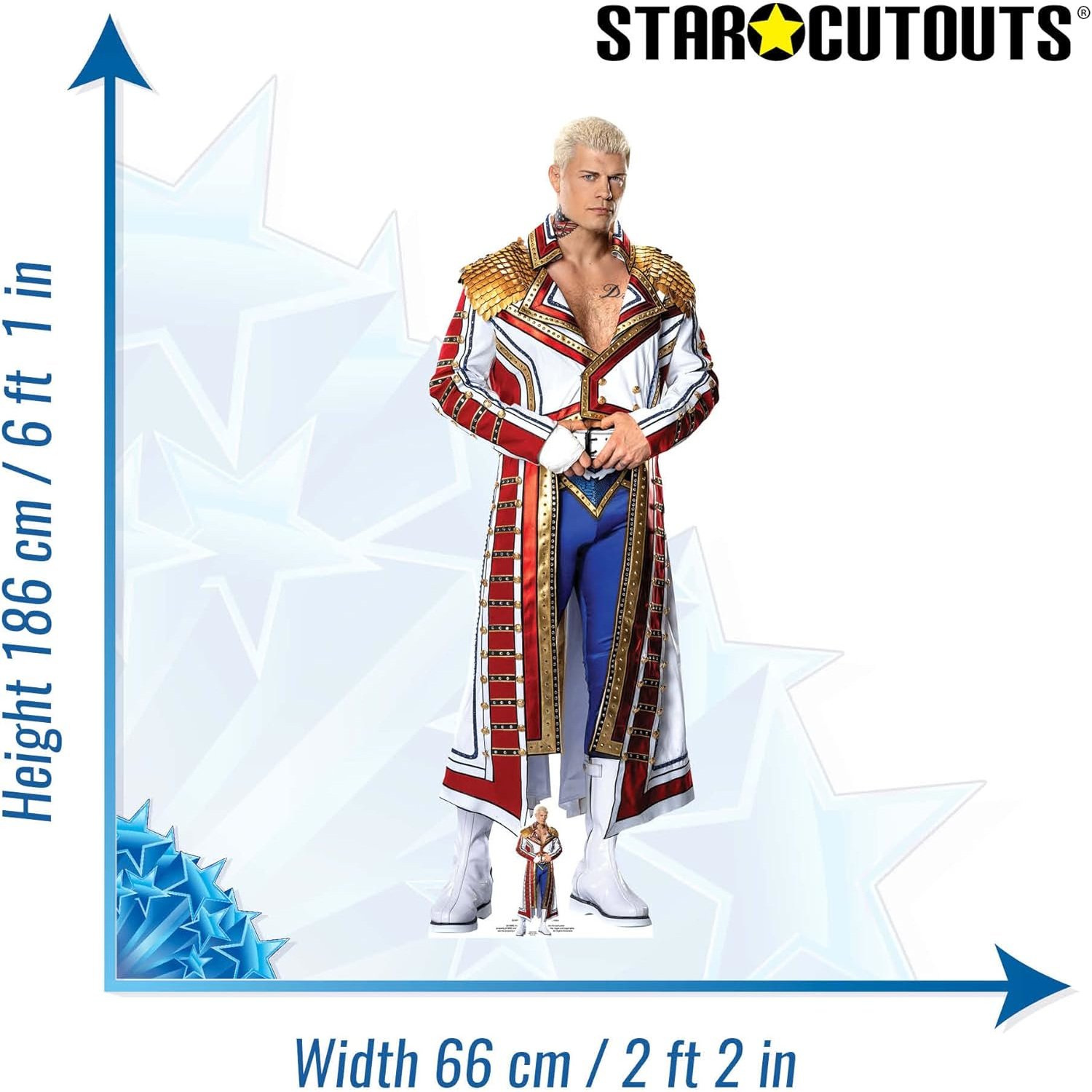 Celebrate the rise of the American Nightmare with this Cody Rhodes lifesize and mini cardboard cutout set — the ultimate statement piece for any true WWE fan.