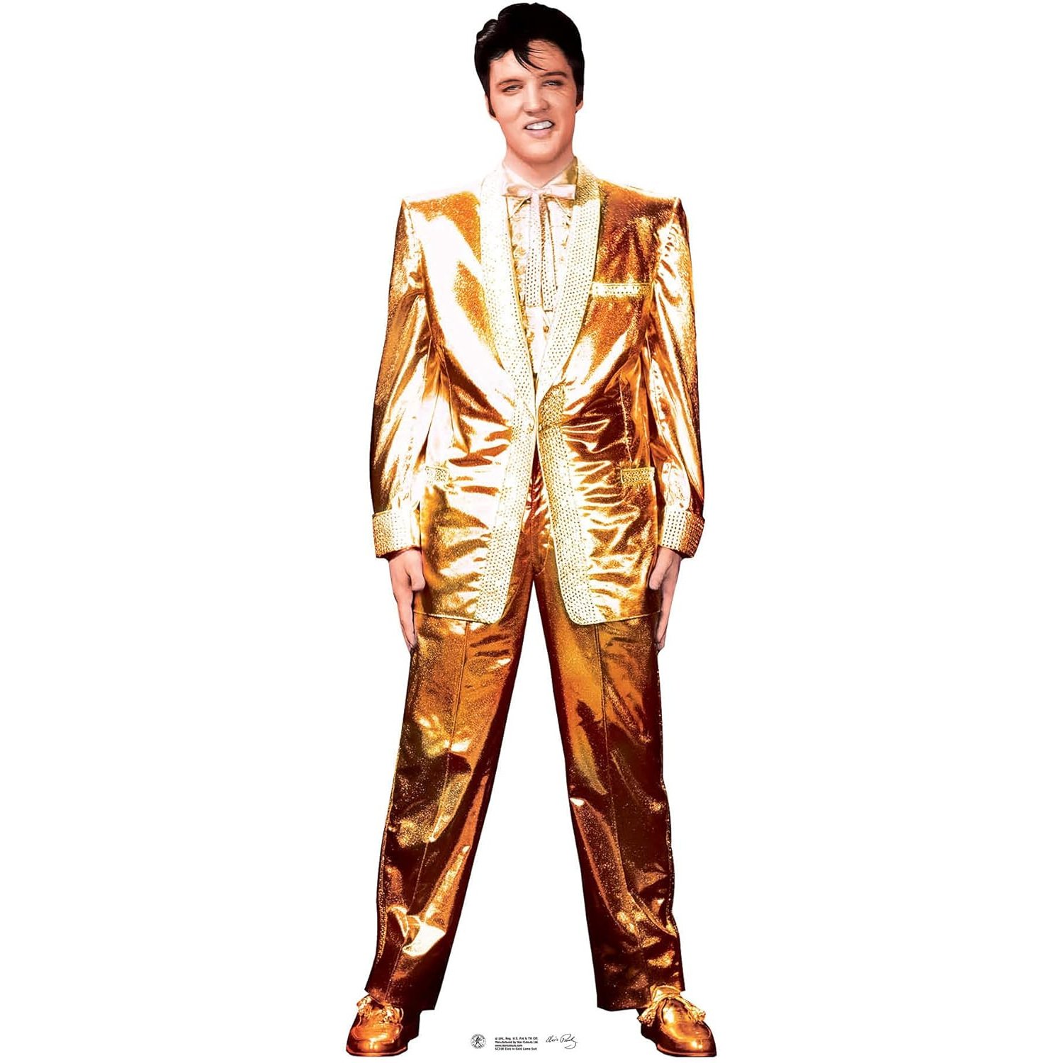Celebrate pure rock ’n’ roll glamour with this officially licensed Elvis Presley “Gold Suit” lifesize cardboard cutout. Featuring Elvis in his legendary gold suit, this standee captures the confidence, charisma, and larger-than-life style that helped define the King of Rock and Roll.