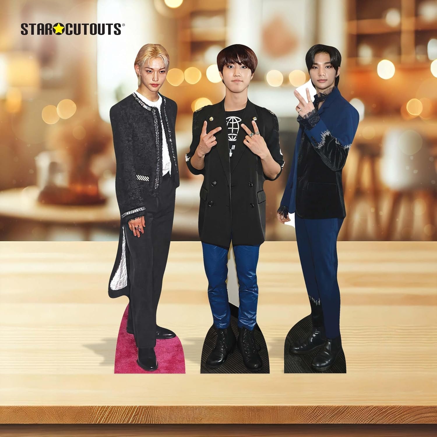 Whether you’re building your ultimate Stray Kids display or adding a touch of K-pop performance magic to your décor, this Felix, Han & Hyunjin shelf top mini cardboard cutout trio delivers standout visuals, personality and unmistakable star presence.