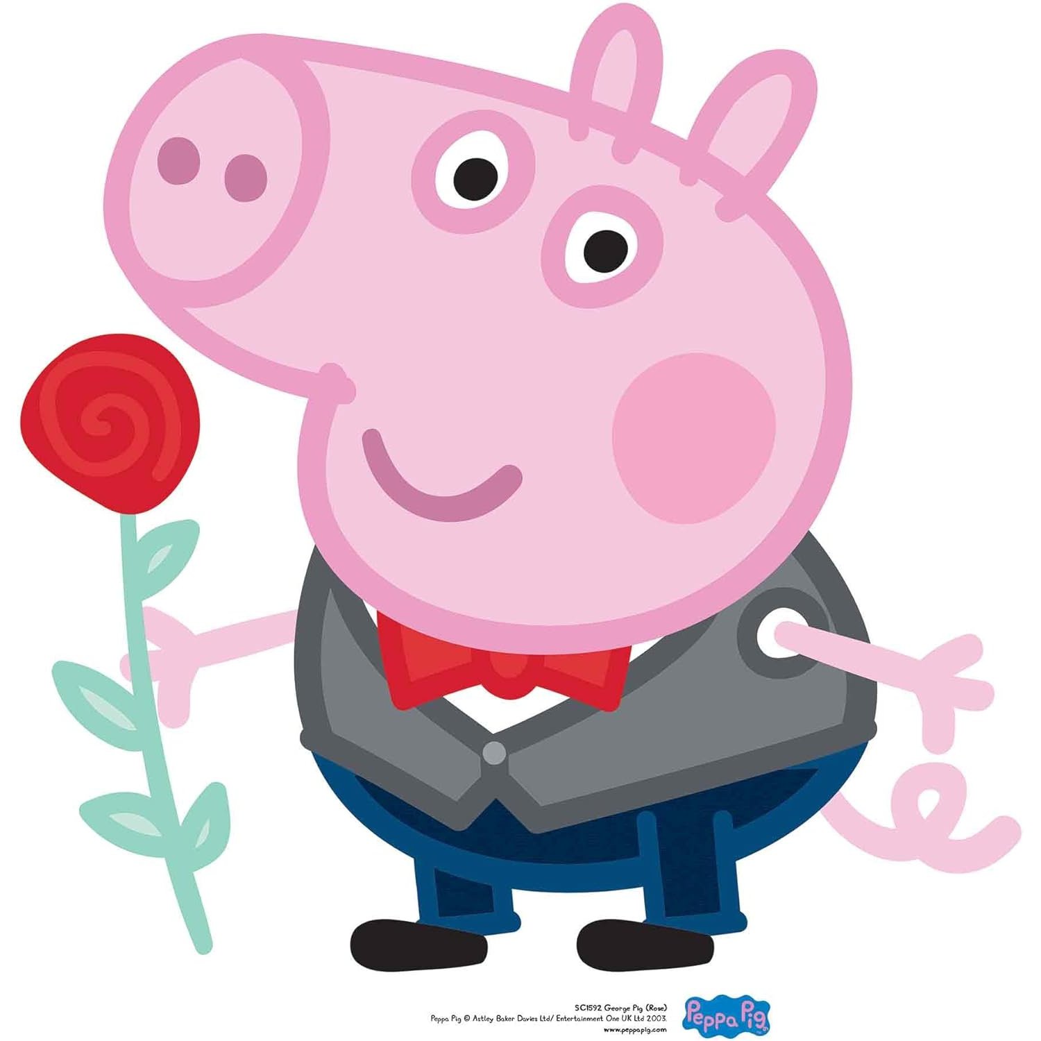 🐷 Adorable George Design: Features George Pig holding a rose in a sweet pose