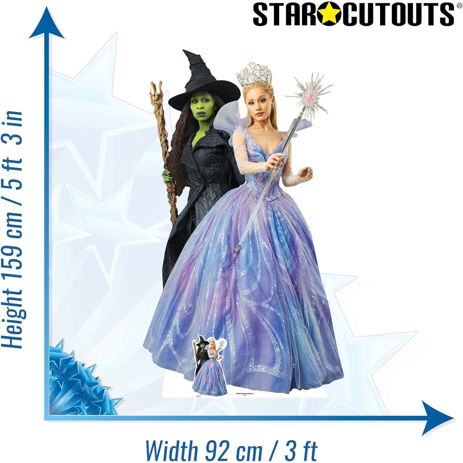 Celebrate the spellbinding charm, friendship, and rivalry of Glinda and Elphaba with this lifesize and mini cardboard cutout/standee — a must-have for fans of Wicked and musical theatre magic.
