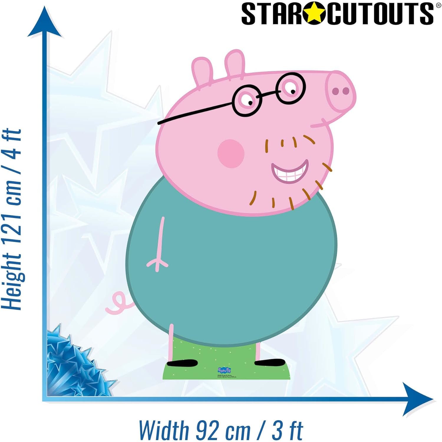 - Large & Mini Cutouts Included: 1 large Daddy Pig cutout (121 x 92cm) plus bonus mini tabletop pieces for playful decoration.