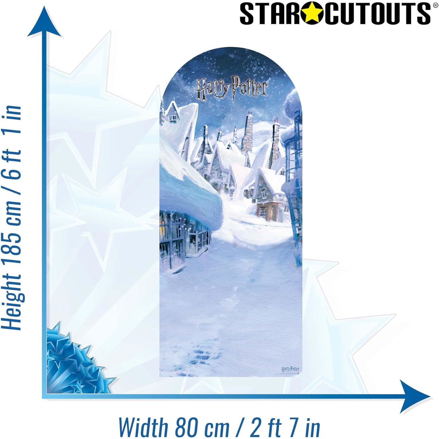 The Hogsmeade Village Official Backdrop Cardboard Cutout / Standee is the perfect way to recreate one of the most beloved locations in the Harry Potter universe, turning any space into a magical winter scene straight from the Wizarding World.