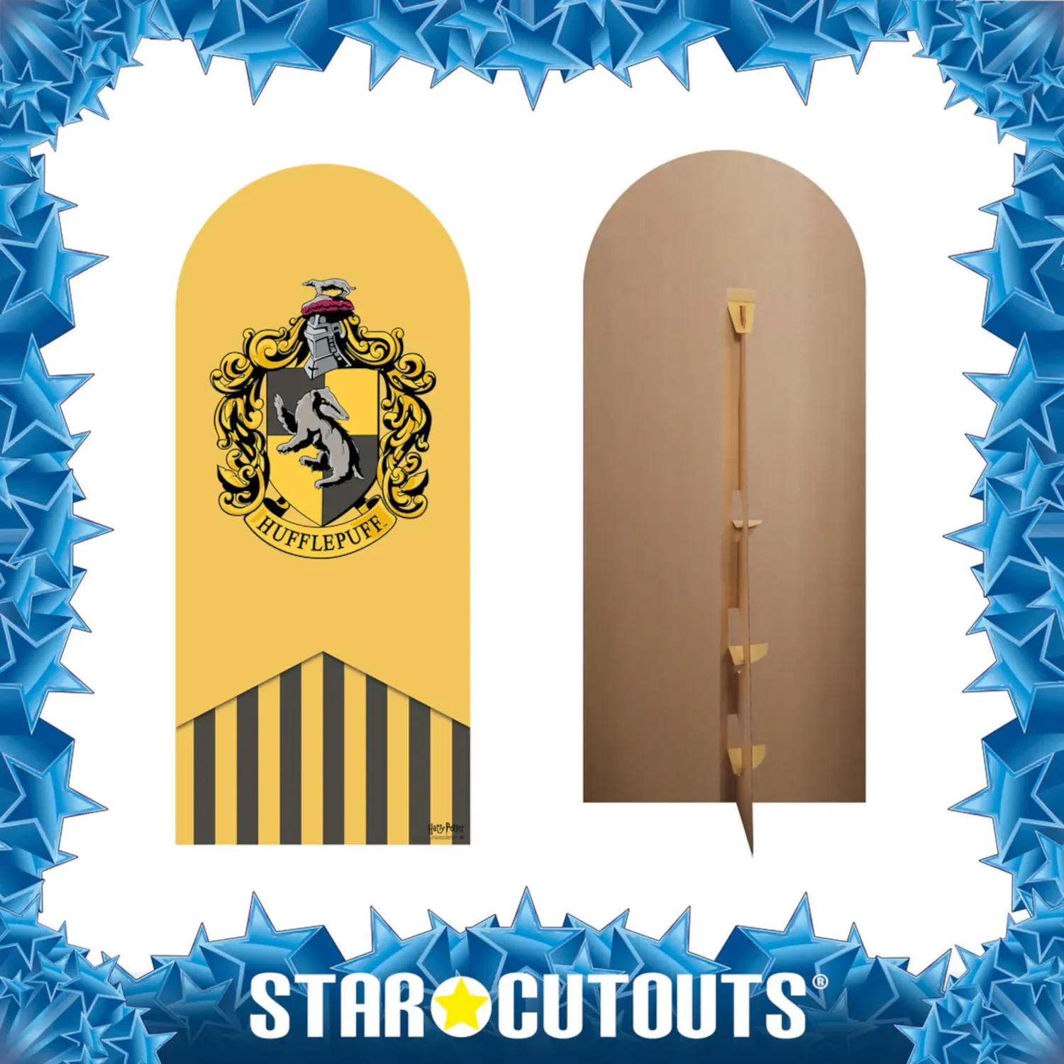 The Hufflepuff Crest Official Backdrop Cardboard Cutout / Standee is the perfect display piece for proud Hufflepuffs, bringing the heart and soul of Hogwarts’ most loyal house into any magical setting.