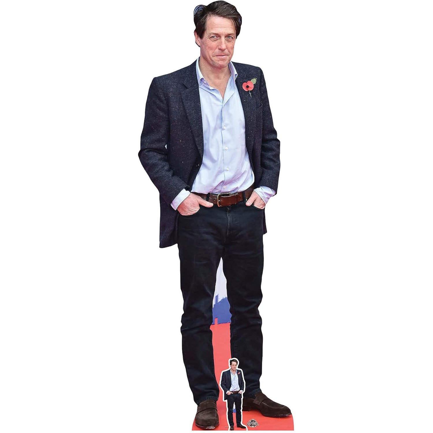 Bring the charm, wit, and quintessential British elegance of Hugh Grant into your space with this lifesize cardboard cutout, complete with a bonus mini version. Perfect for fans, themed parties, photo booths, and collector displays, this standee captures Hugh in a stylish blue shirt, reflecting his iconic on-screen presence.