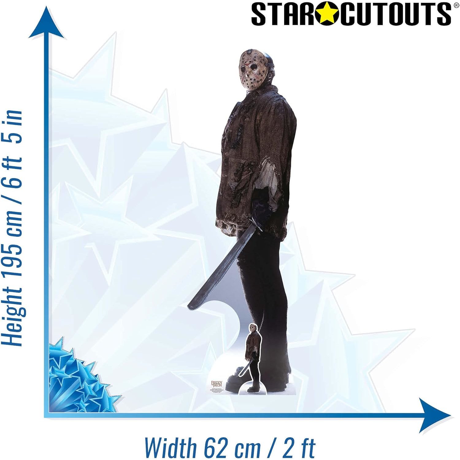 Bring chilling terror to your horror collection with this officially licensed Jason Voorhees cardboard cutout, available in both lifesize and mini versions. Inspired by Freddy vs. Jason, this standee captures the silent, unstoppable slasher at his most menacing.