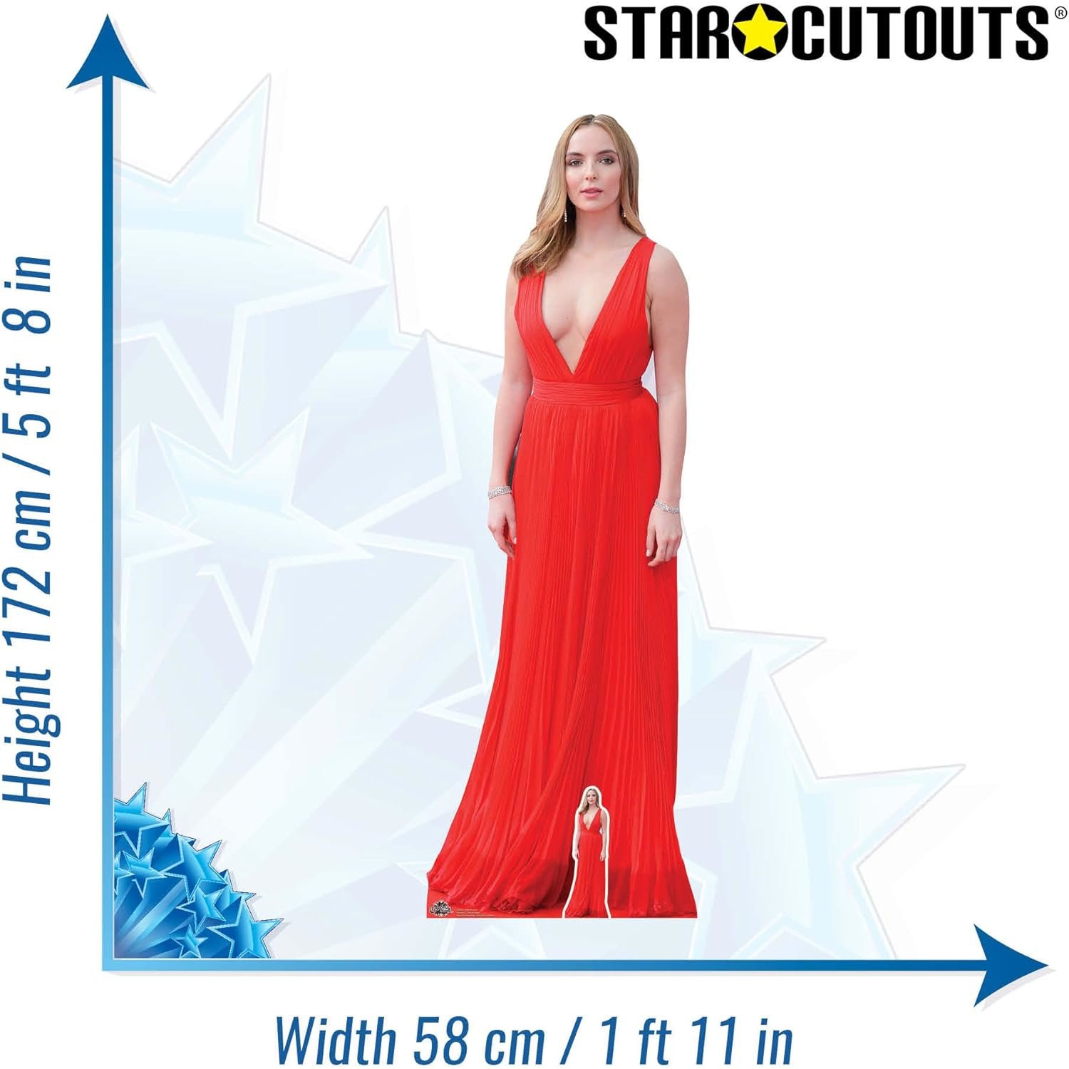 Bring sophistication and star presence to any space with this stunning lifesize cardboard cutout of Jodie Comer in her striking ‘Red Dress’ look—complete with a bonus mini version. Perfect for fans, events, photo opportunities, collector displays, and décor, this high-quality standee captures the poise and elegance of one of Britain’s most acclaimed performers.