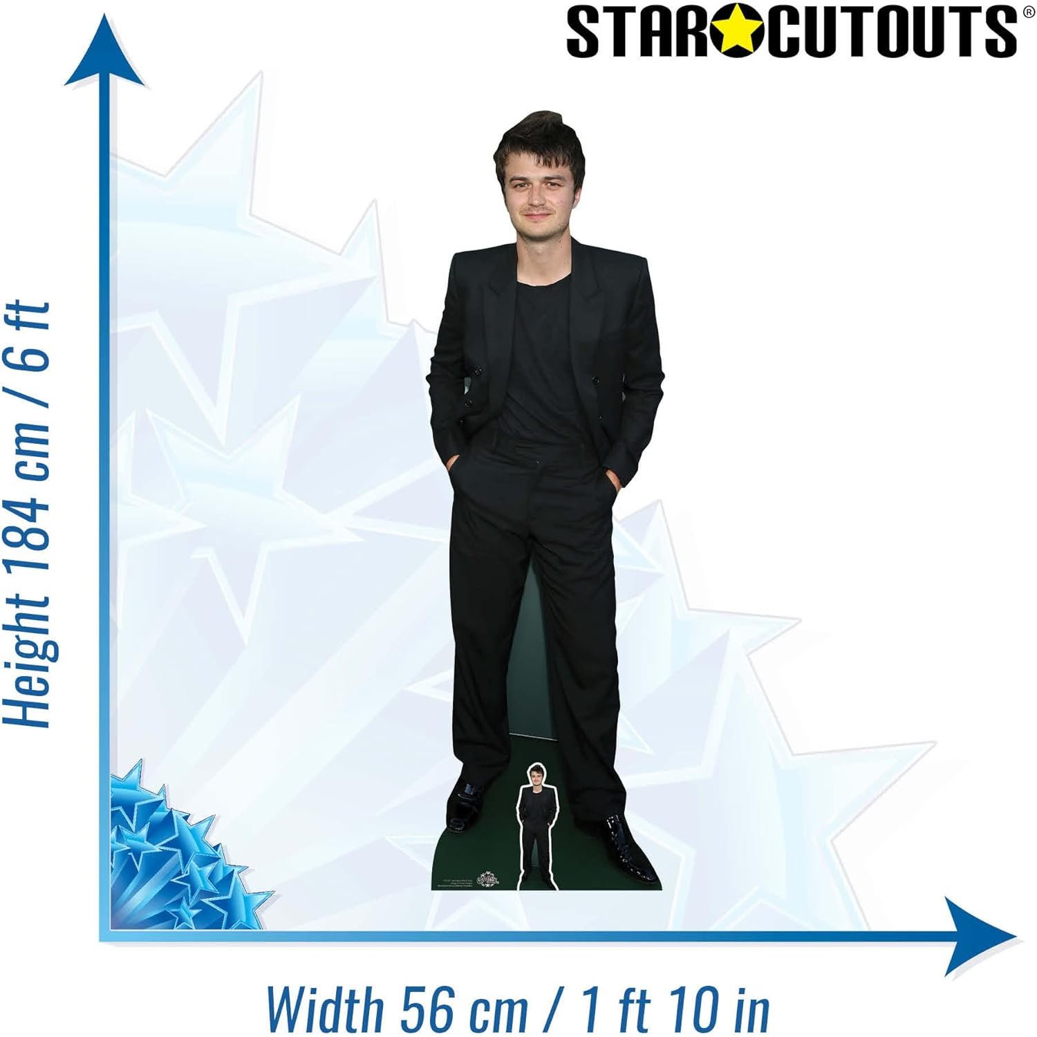 Bring the charismatic charm of Joe Keery into your space with this sophisticated cardboard cutout set. Featuring the popular American actor in a sleek black suit, this set includes a lifesize standee and a mini tabletop cutout, perfect for fans, themed events, home décor, or collector displays.