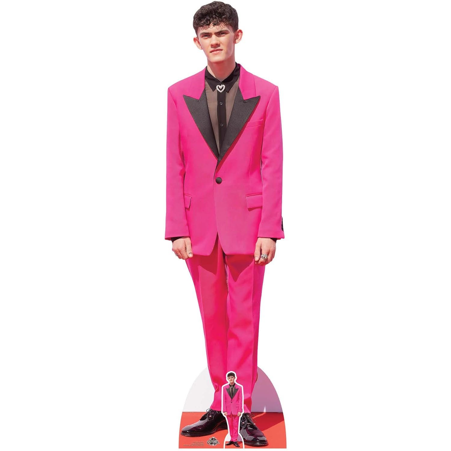 Celebrate the charm and rising star power of Joe Locke, the acclaimed Manx actor, with this stylish cardboard cutout set. Featuring Locke in a vibrant pink suit, this set includes both a lifesize standee and a mini tabletop cutout, perfect for fans, themed décor, collector displays, and events.