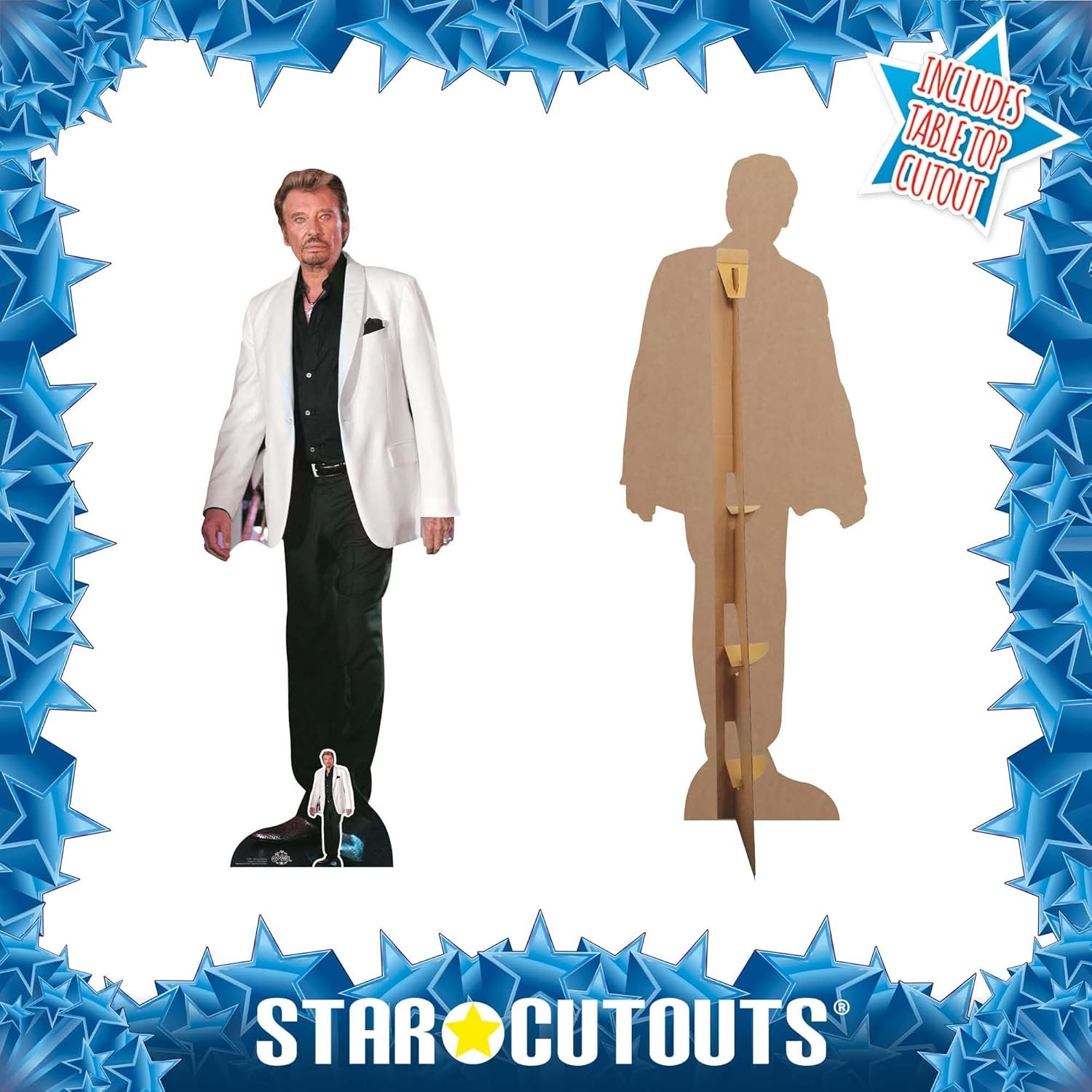 Bring legendary rock and roll energy into your space with this iconic Johnny Hallyday lifesize and mini cardboard cutout. Perfect for fans, collectors, themed events, or music-inspired décor, this standee captures the spirit and charisma of France’s “Elvis.”