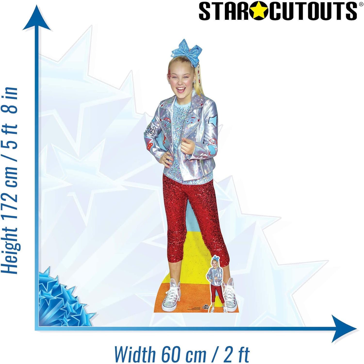 Bring fun, color, and superstar energy to any space with this JoJo Siwa cardboard cutout set. Featuring JoJo in a signature bright and playful outfit, this set includes both a lifesize standee and a mini desktop cutout, perfect for fans, themed parties, bedrooms, or collector displays.