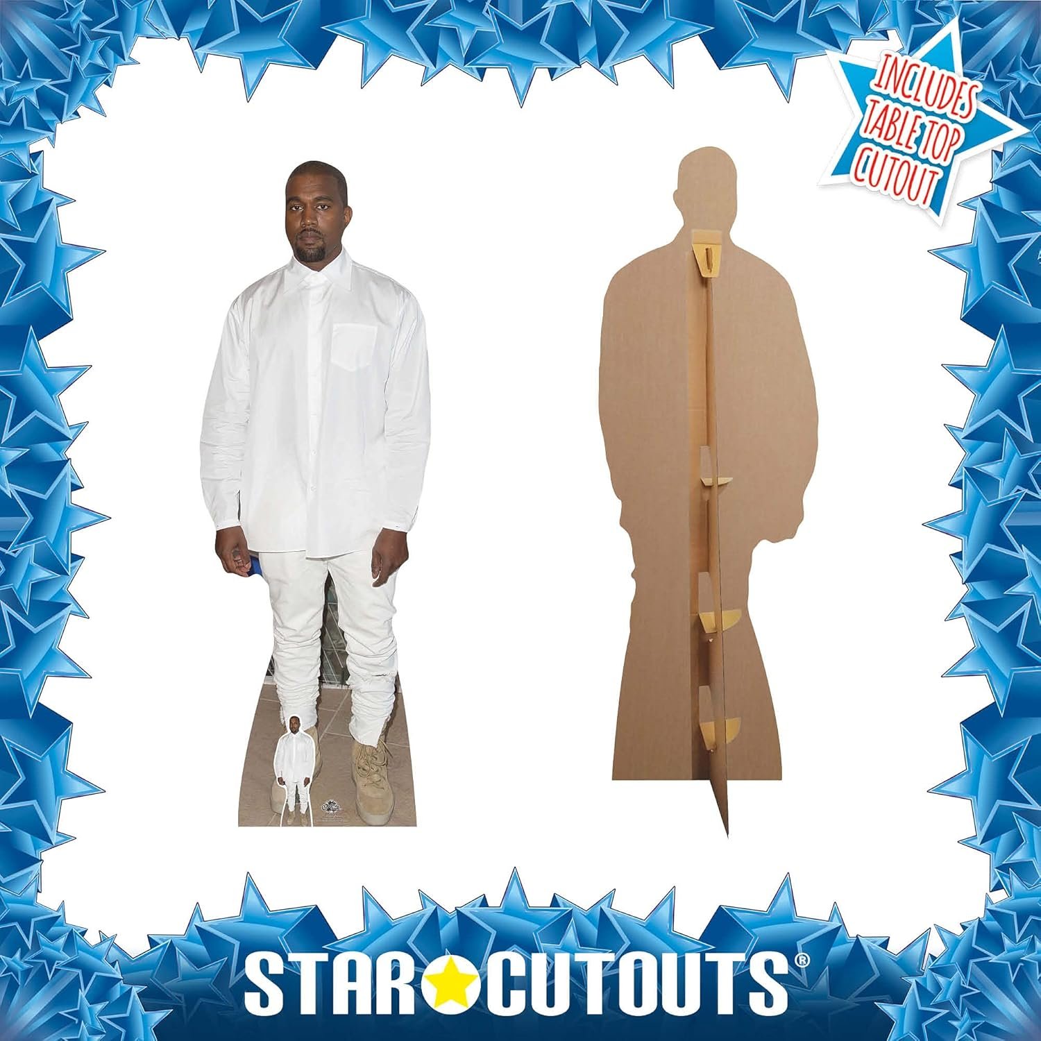 Bring the iconic presence of Kanye West into your space with this lifesize and mini cardboard cutout set. Known professionally as Ye, he is an American rapper, songwriter, and record producer, widely regarded as one of the greatest rappers of all time and a prominent figure in hip-hop.