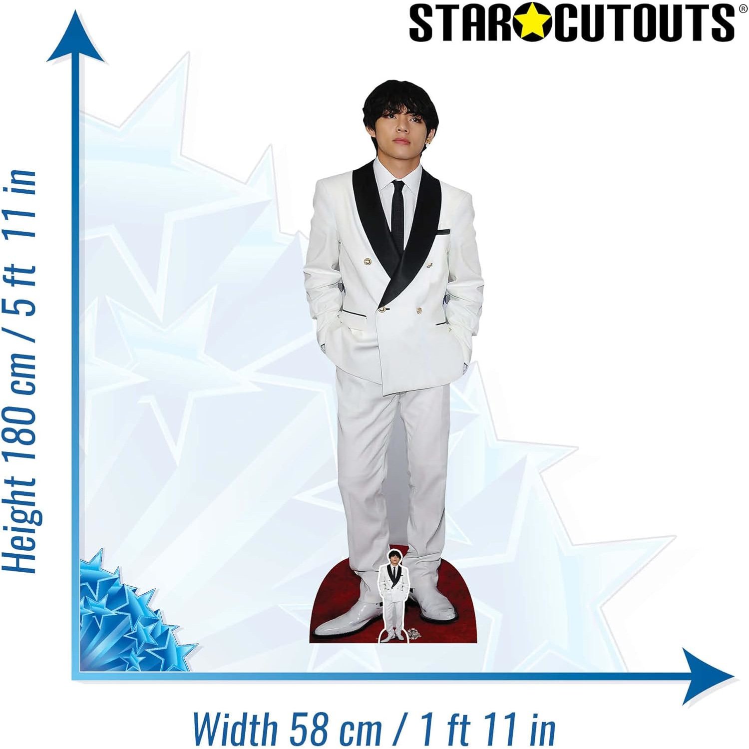 Kim Tae-hyung ‘V’ White Suit (South Korean Singer/Songwriter) Lifesize + Mini Cardboard Cutout / Standee