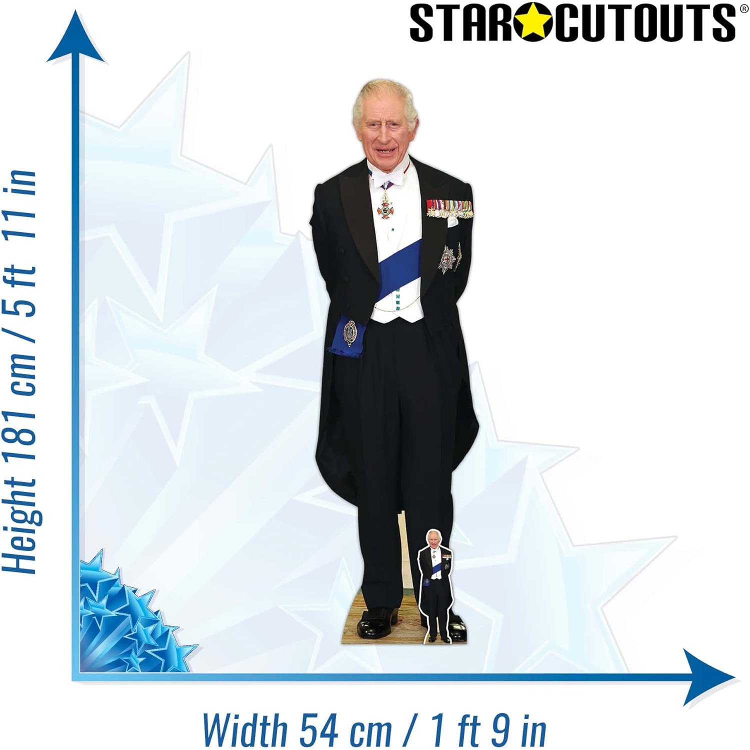 Celebrate royal heritage and ceremonial tradition with this distinguished King Charles III cardboard cutout, featuring His Majesty wearing his formal attire adorned with medals. As King of the United Kingdom and Head of the Commonwealth, King Charles III is one of the most recognisable figures in the world. This standee captures a powerful and historic image of the monarch, showcasing his decorated uniform and symbolising decades of royal service and duty.