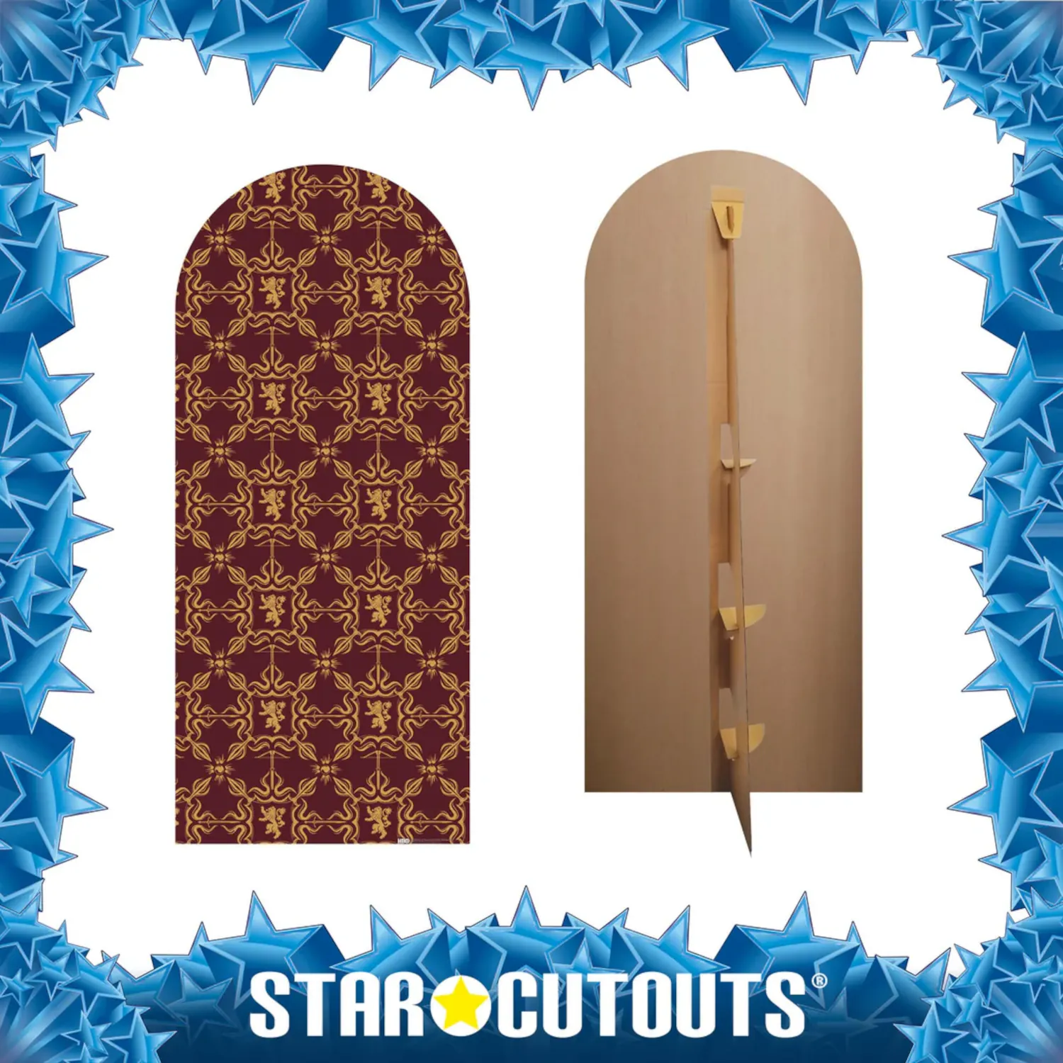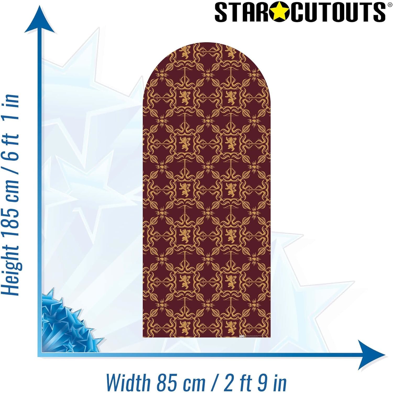 Bring the wealth, power, and prestige of the Seven Kingdoms into your space with the Lannister Pattern (Game of Thrones) Official Backdrop Cardboard Cutout / Standee. Featuring a luxurious deep crimson background decorated with repeating gold lion crests, this regal backdrop perfectly represents the dominance and pride of House Lannister, one of the most influential families in Westeros.