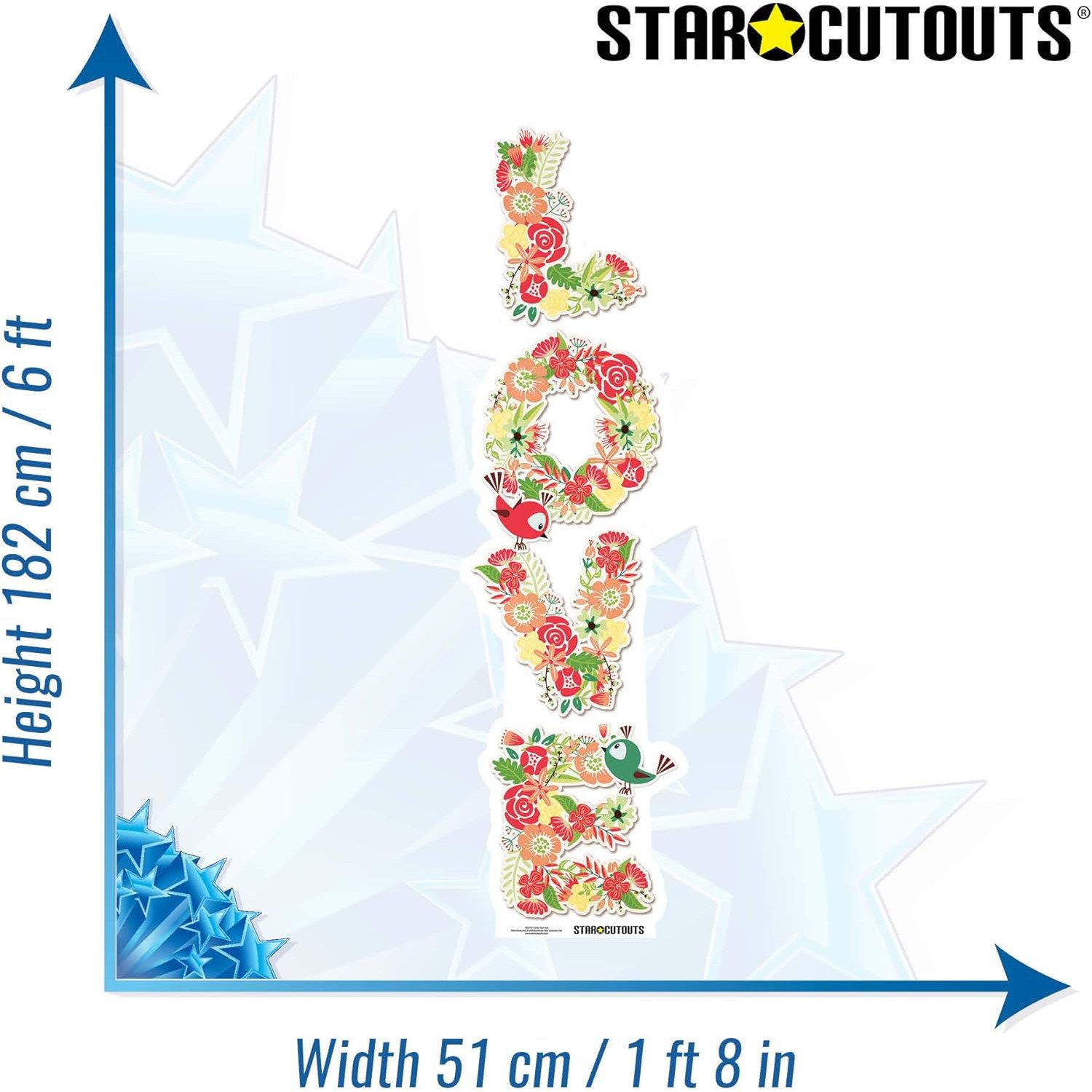 Celebrate romance and special moments with our Love “Floral Design” Large Cardboard Cutout / Standee! Featuring the word “Love” elegantly crafted from a floral arrangement and accented with a charming little bird, this cutout brings warmth, beauty, and a whimsical touch to any romantic celebration.
