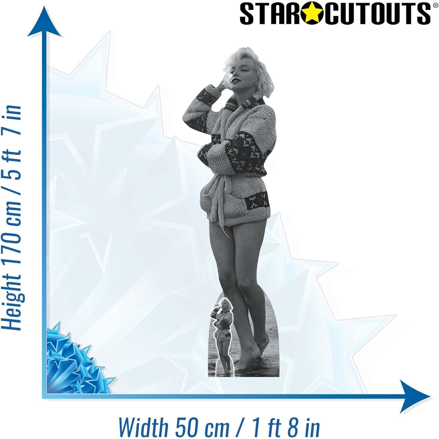 Celebrate the timeless beauty and enduring legacy of a Hollywood legend with this officially licensed Marilyn Monroe ‘On Beach 1962’ cardboard cutout. Featuring Marilyn in a classic beach photograph from 1962, presented in elegant black and white, this standee captures a candid and iconic moment from the final year of her life, reflecting both her glamour and vulnerability.