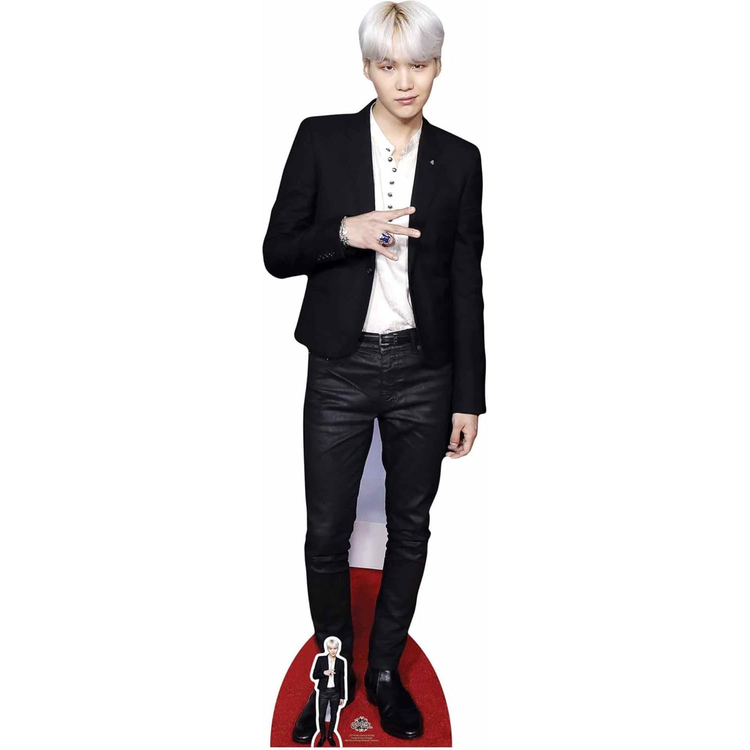 Celebrate one of K-pop’s most influential artists with this high-quality Suga lifesize cardboard cutout and matching mini version. Perfect for fans of BTS’s rapper, songwriter, and producer, this collectable brings Min Yoon-gi’s iconic presence straight into your home or event space.