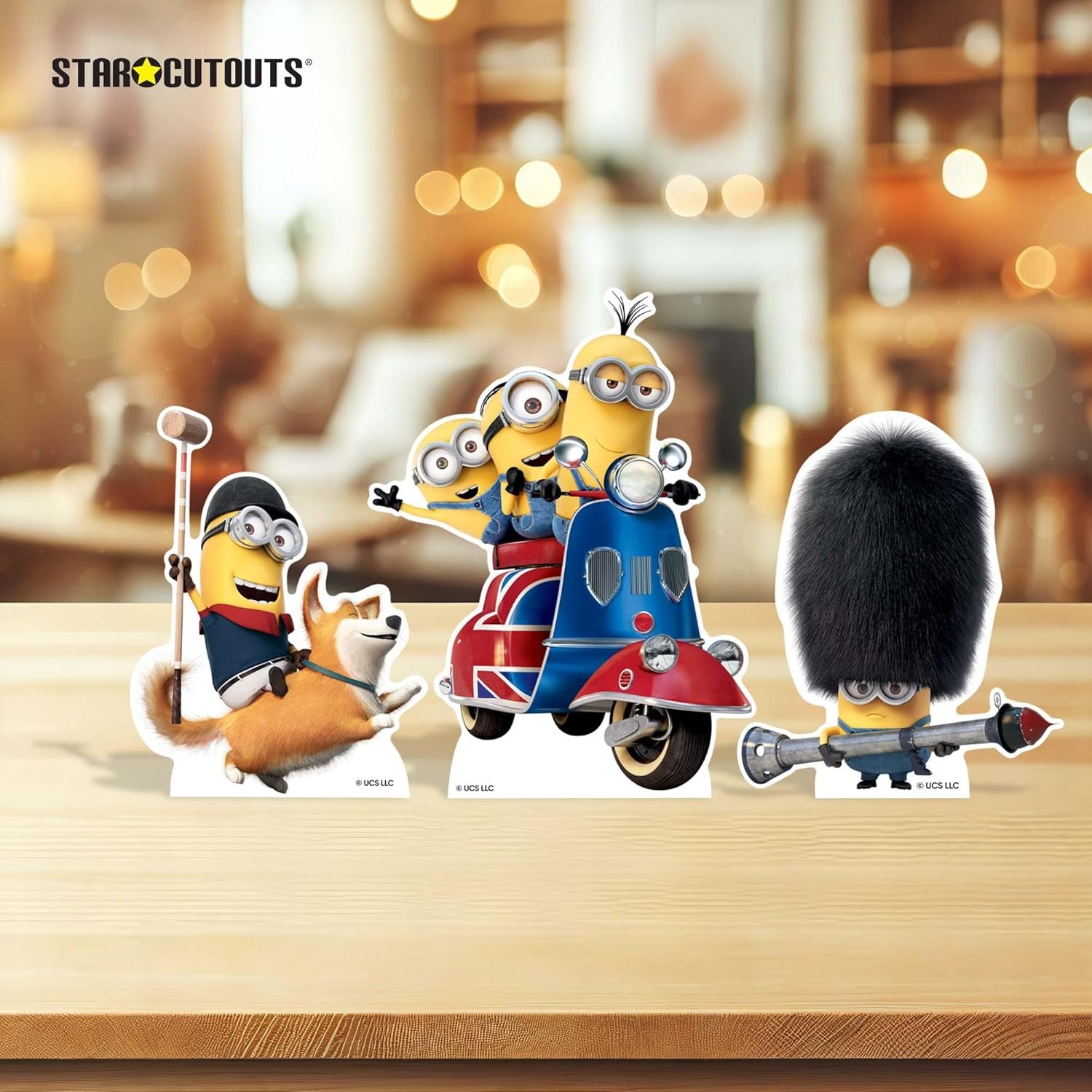 Perfectly sized for shelves, desks, mantels, or display units, these mini standees add instant personality to any room. From royal guards to corgis and Union Jack scooters, each cutout captures the Minions’ trademark humour blended with classic British charm.