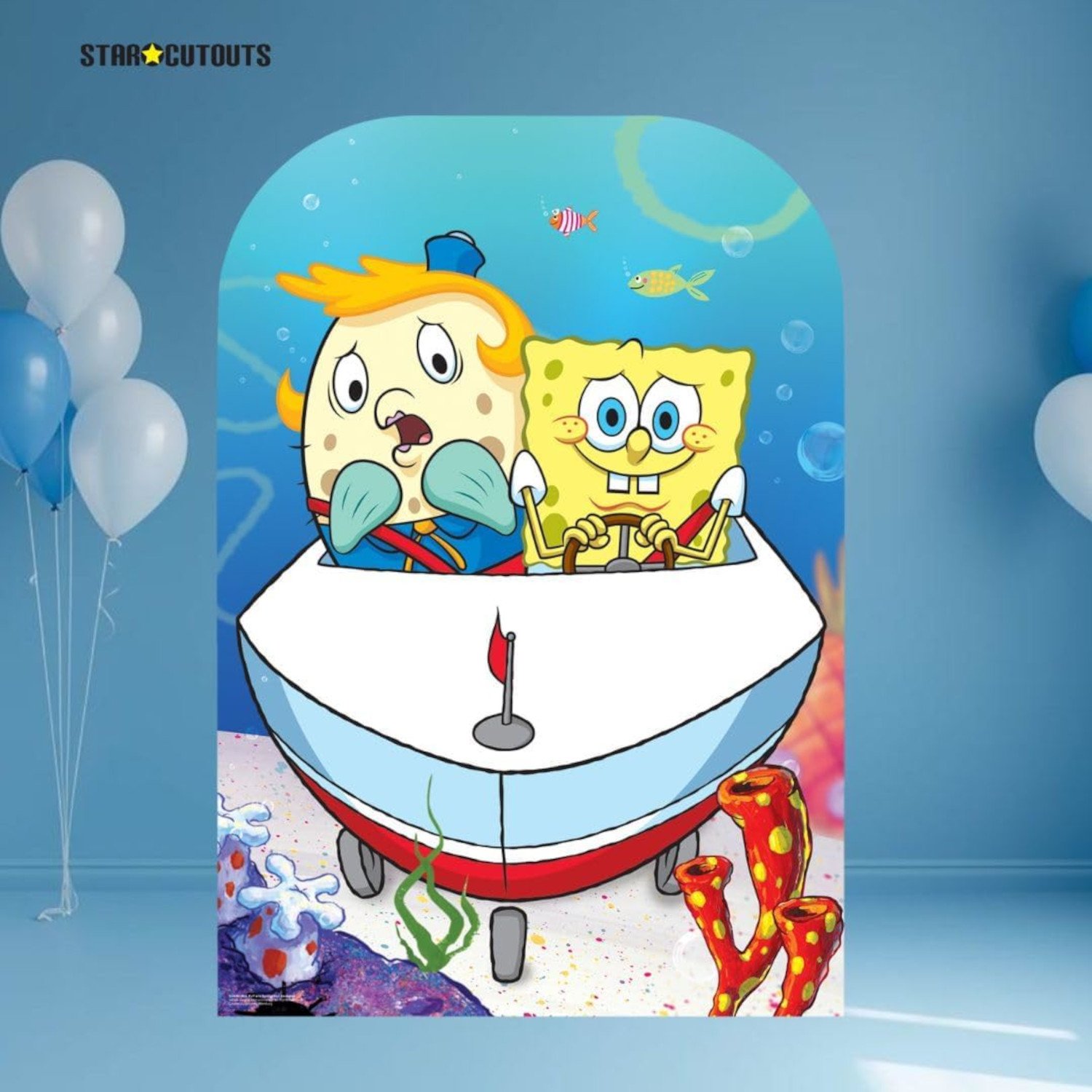 Bring the laughs and chaos of Bikini Bottom straight to your party with this official SpongeBob SquarePants backdrop! Perfect for birthdays, themed events, or playful room décor, this freestanding cutout captures SpongeBob and Mrs Puff mid-boat adventure in vibrant detail.