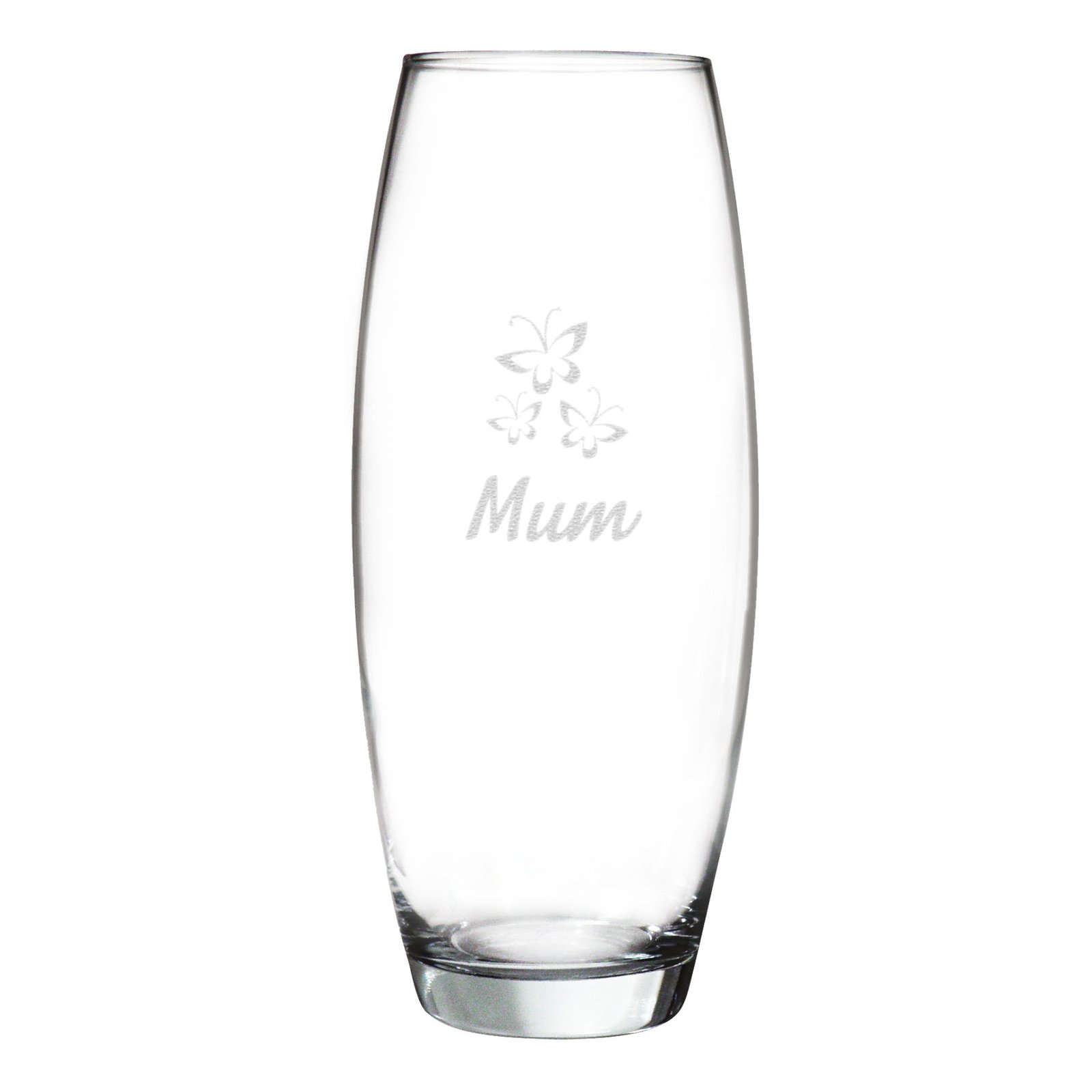 ‘Mum’ Butterflies Motif Tapered Glass Bullet Vase