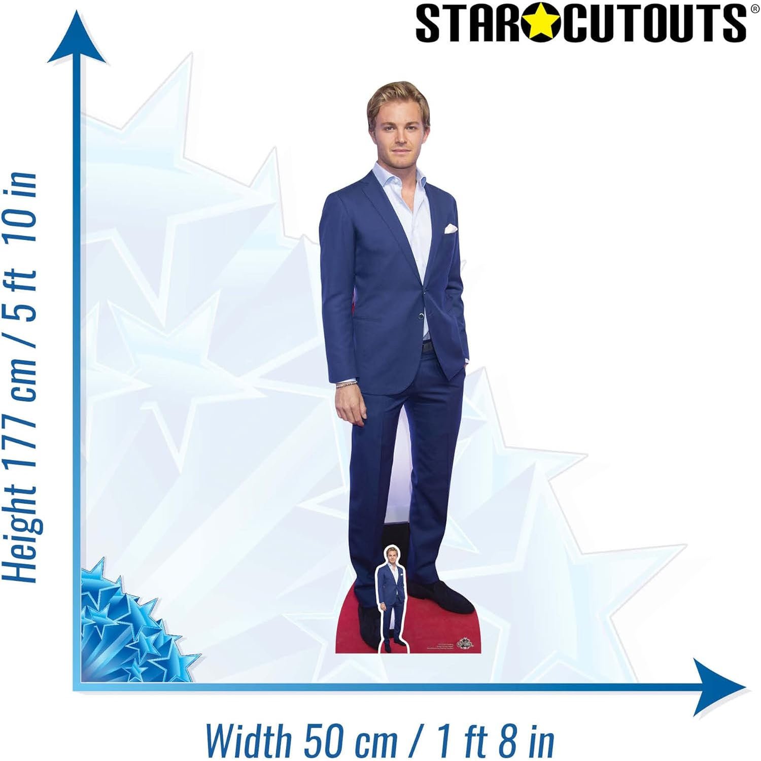 Celebrate the style and legacy of a Formula One World Champion with this Nico Rosberg cardboard cutout set. Featuring Rosberg in a sophisticated red-carpet look, this set includes both a lifesize standee and a mini desktop cutout, making it perfect for motorsport fans, collector rooms, events, offices, and themed décor.