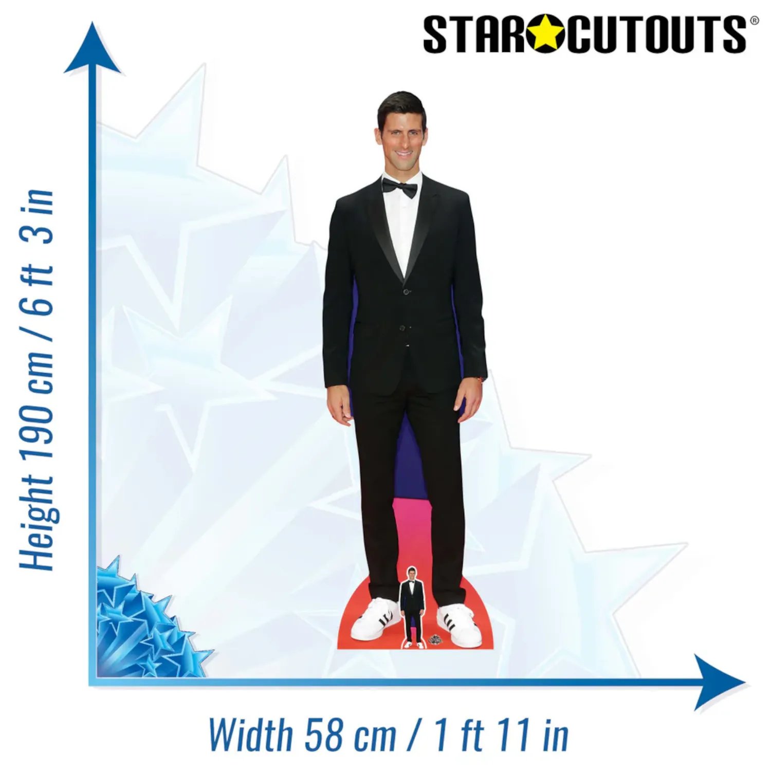 Bring the presence of one of tennis’s all-time greats into your home, event or display with this striking Novak Djokovic lifesize and mini cardboard cutout. Featuring Djokovic in a sleek black suit, this standee is perfect for fans, collectors, sports venues and tennis-themed events.