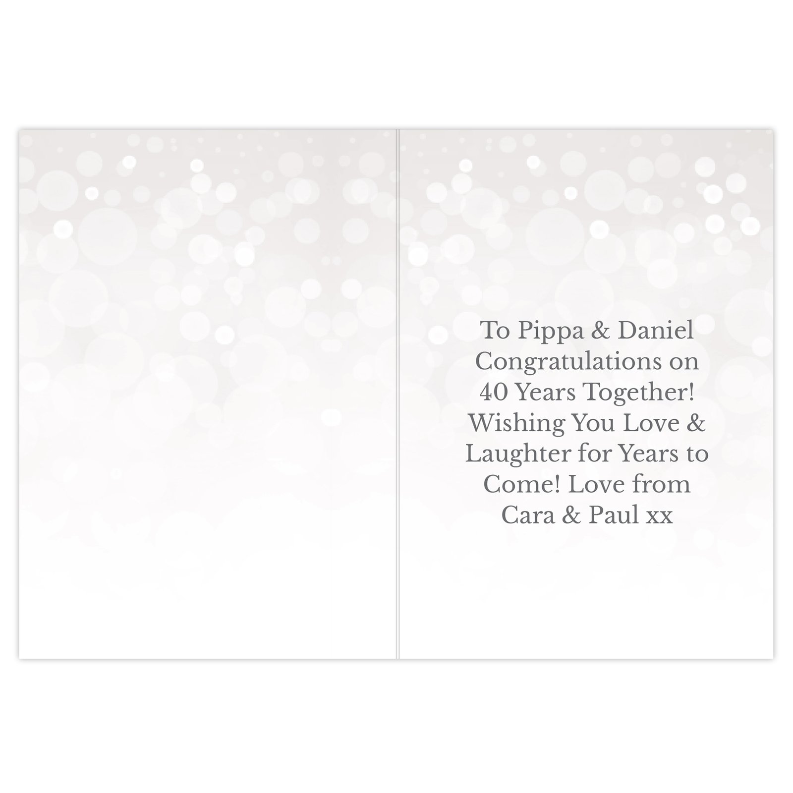 Note: The wording “40th Ruby Anniversary” is fixed and cannot be changed. - Personalised Inside Message: Add your own heartfelt message with up to 7 lines of text (maximum 25 characters per line) inside the card, making it truly personal.