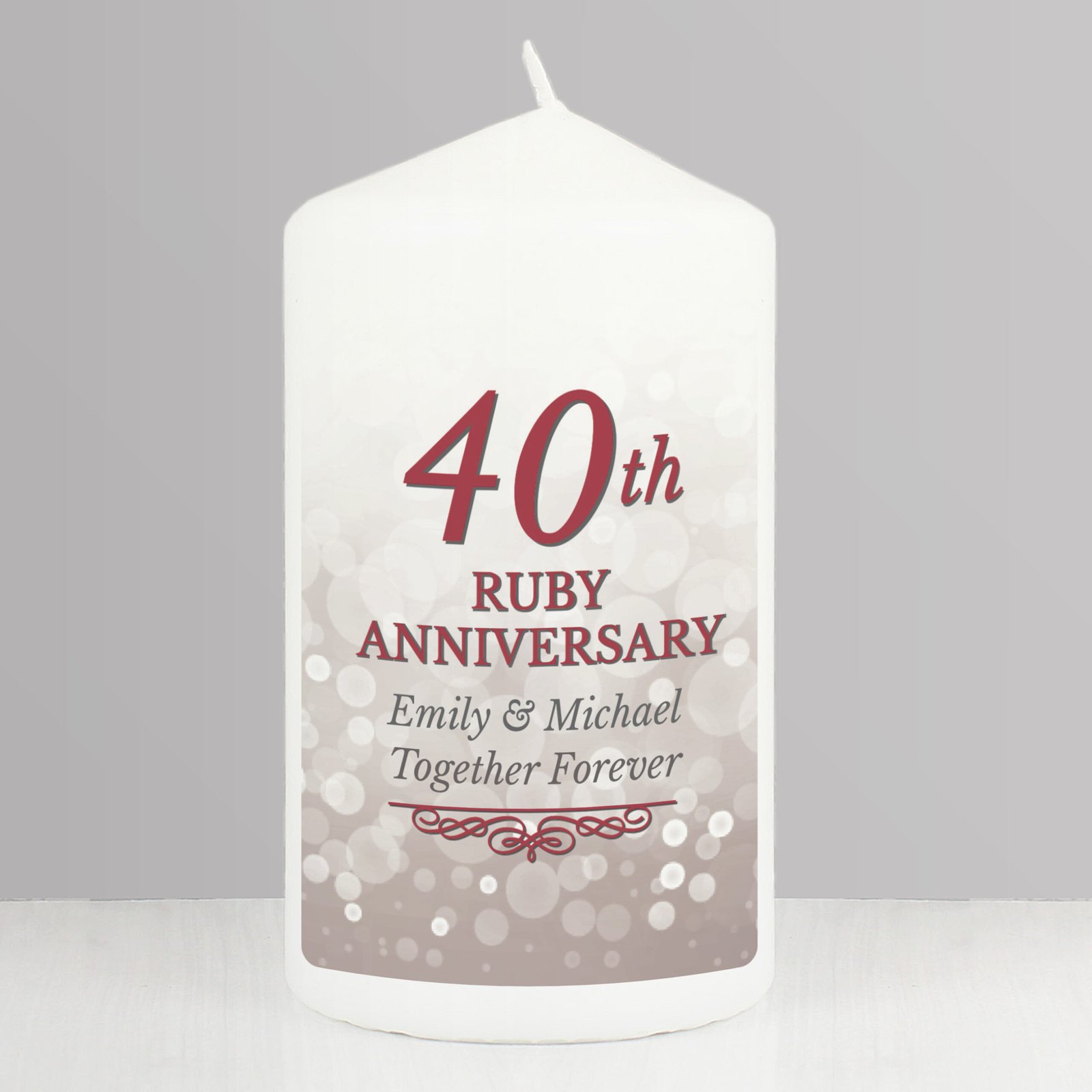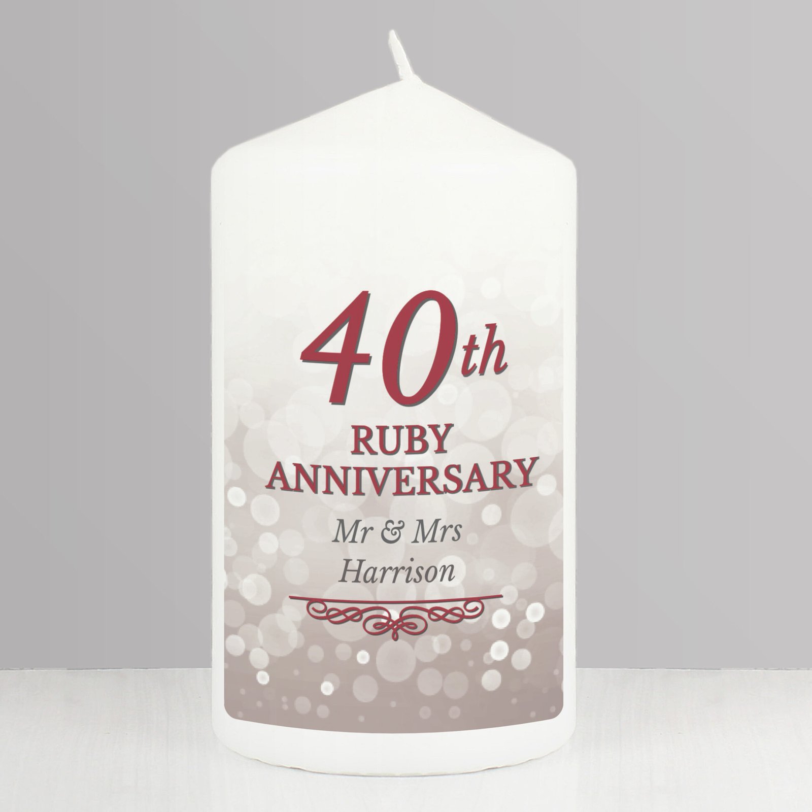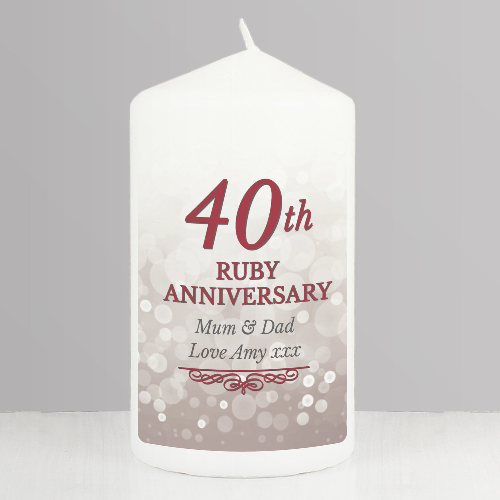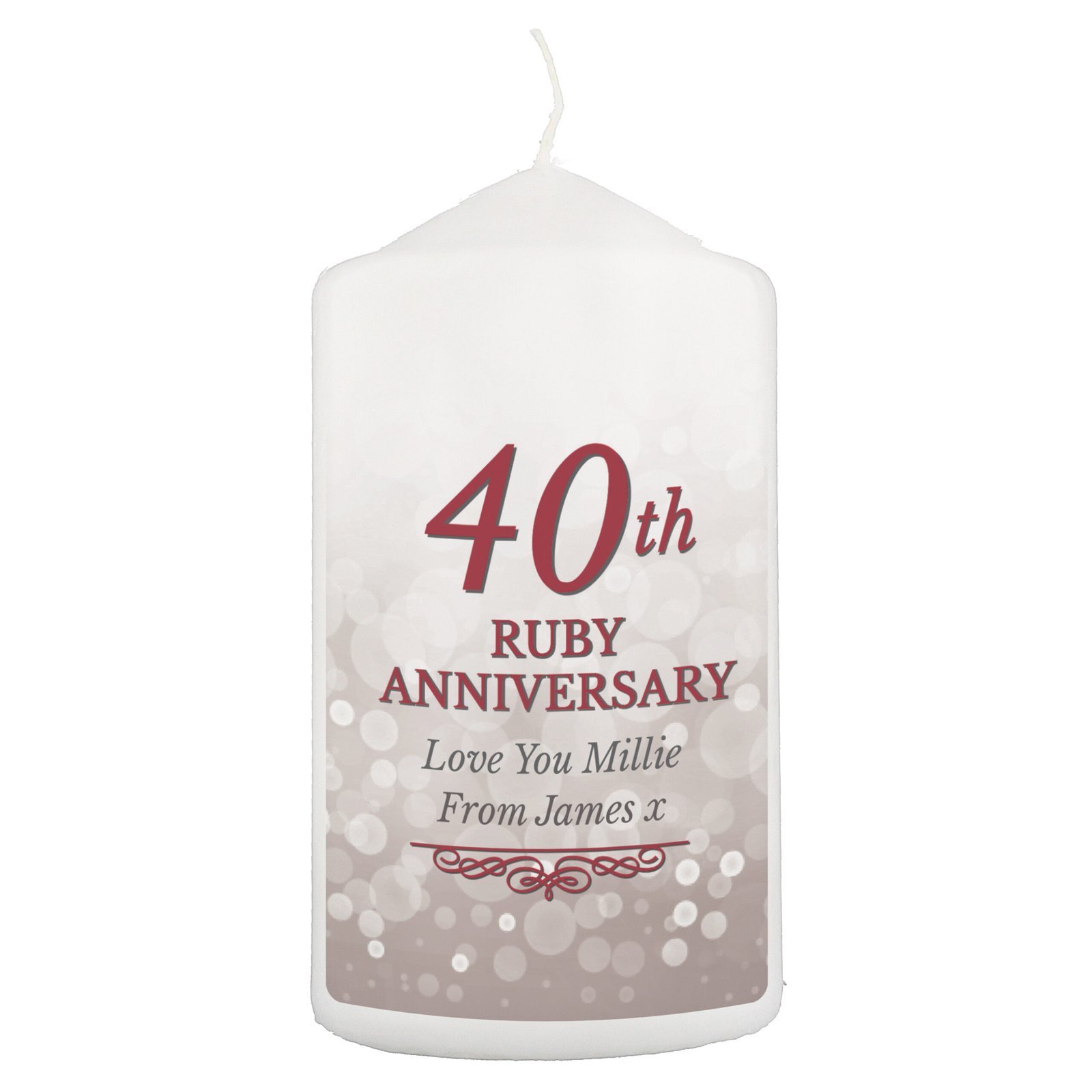 Personalised ’40th Ruby Anniversary’ Pillar Candle