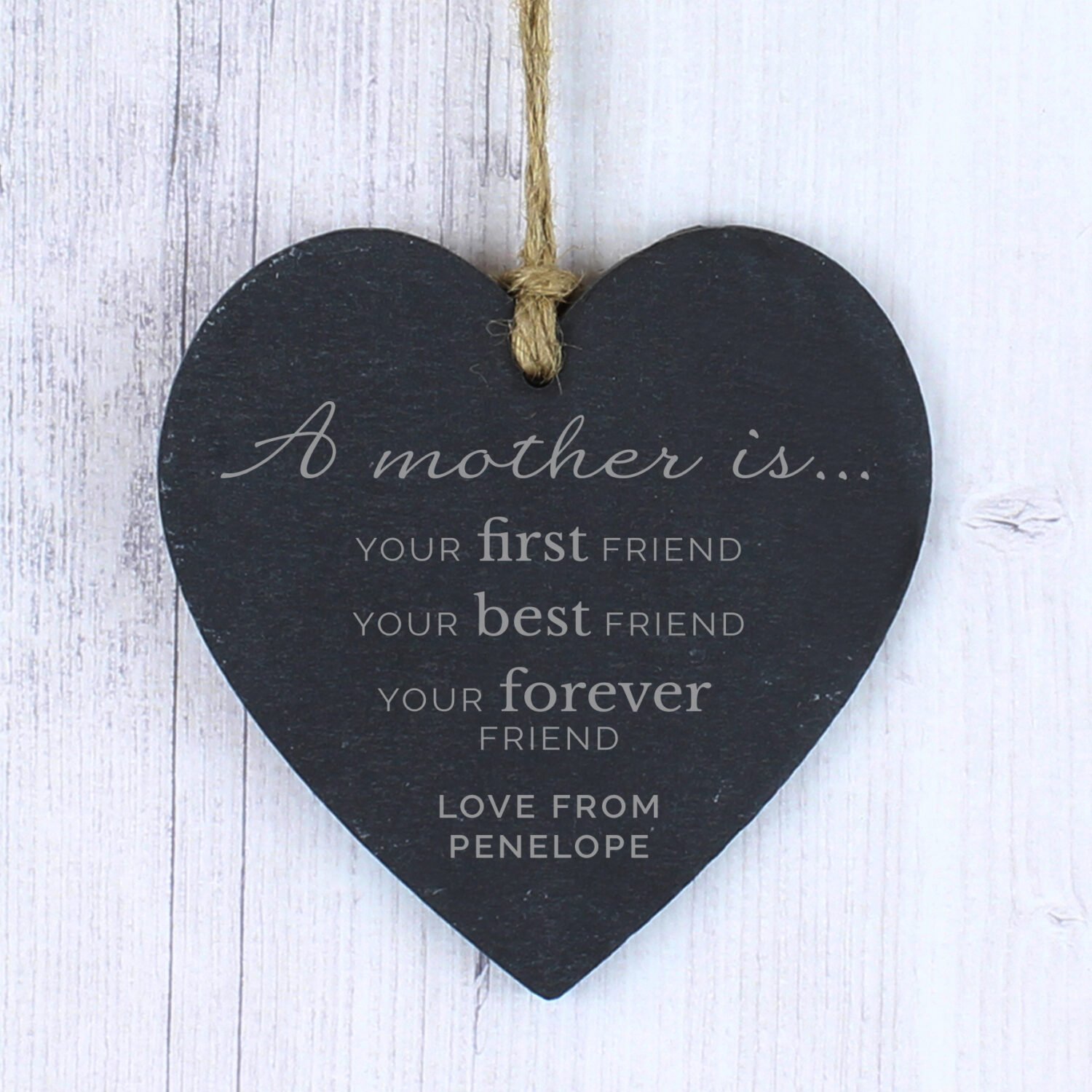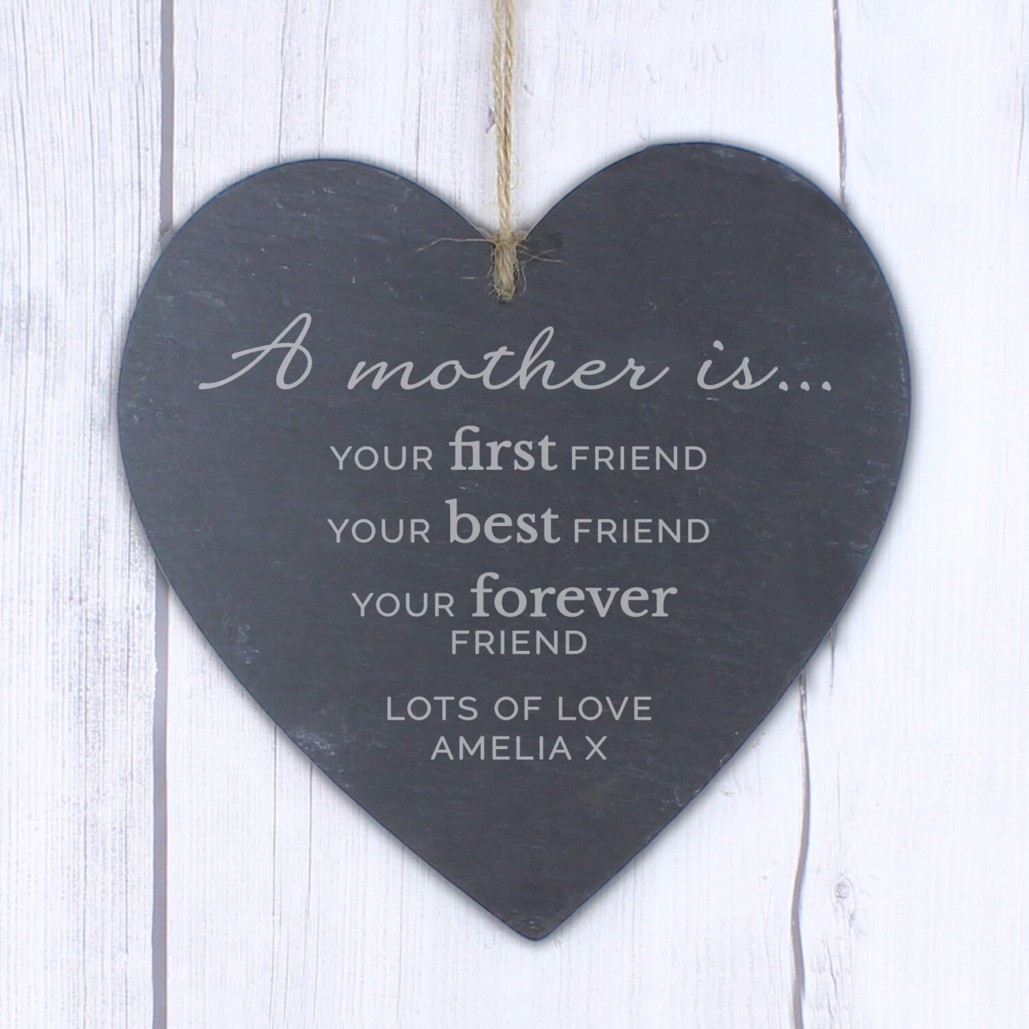 Celebrate the love, strength, and lasting friendship of a mother with this heartfelt Personalised ‘A Mother Is…’ Hanging Slate Heart Decoration. Thoughtfully designed with a touching fixed quote and space for your own custom message, it’s the perfect keepsake gift for Mother’s Day, birthdays, or just because.