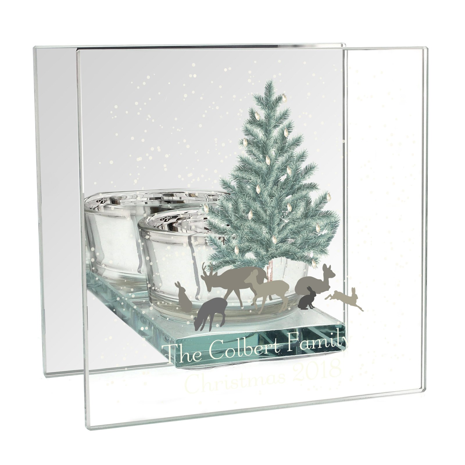 Personalised A Winter’s Night Christmas Mirrored Glass Tea Light Candle Holder