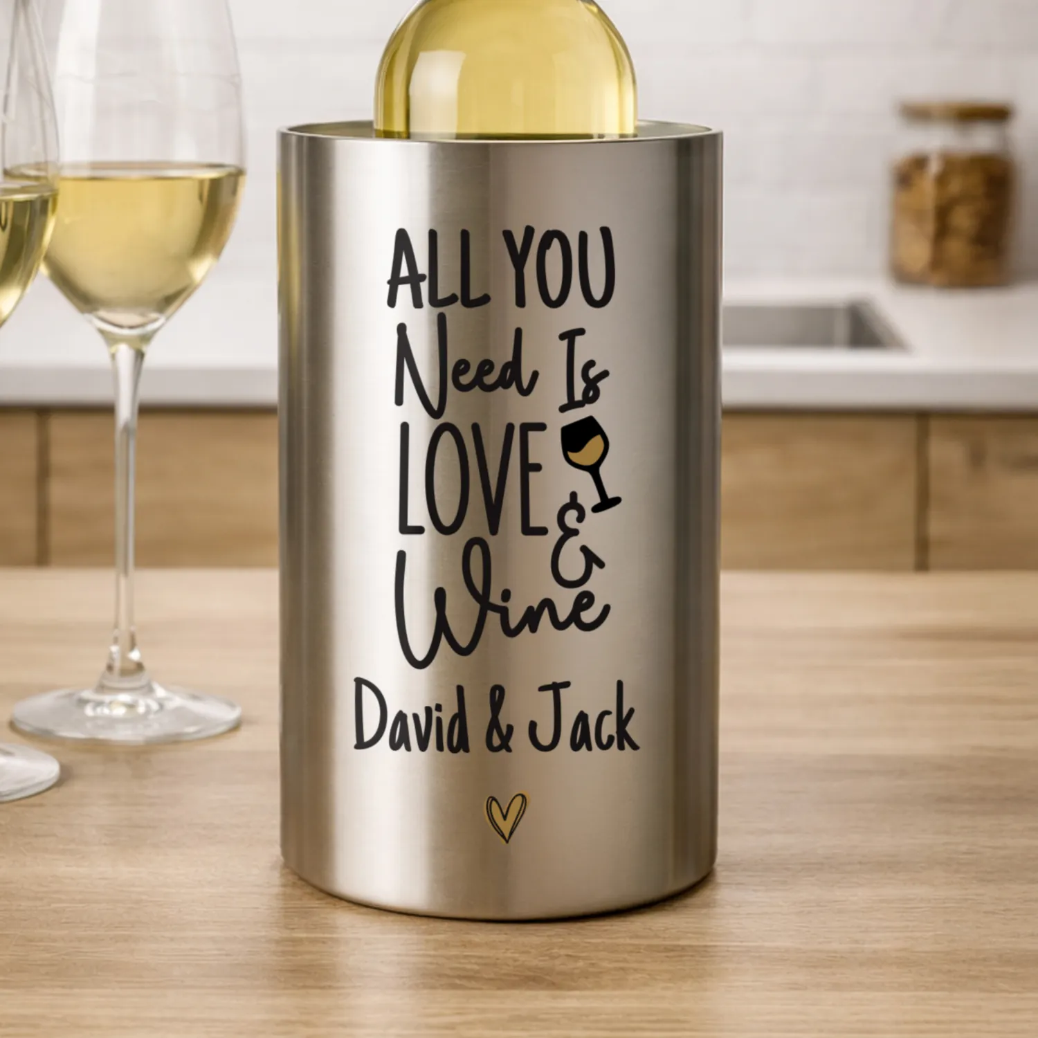 Personalised ‘All You Need Is Love & Wine’ Stainless Steel Wine Cooler